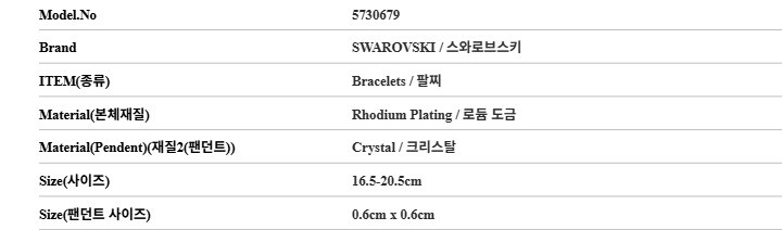 7. 주요 사양 | 로듐 도금 팔찌 |