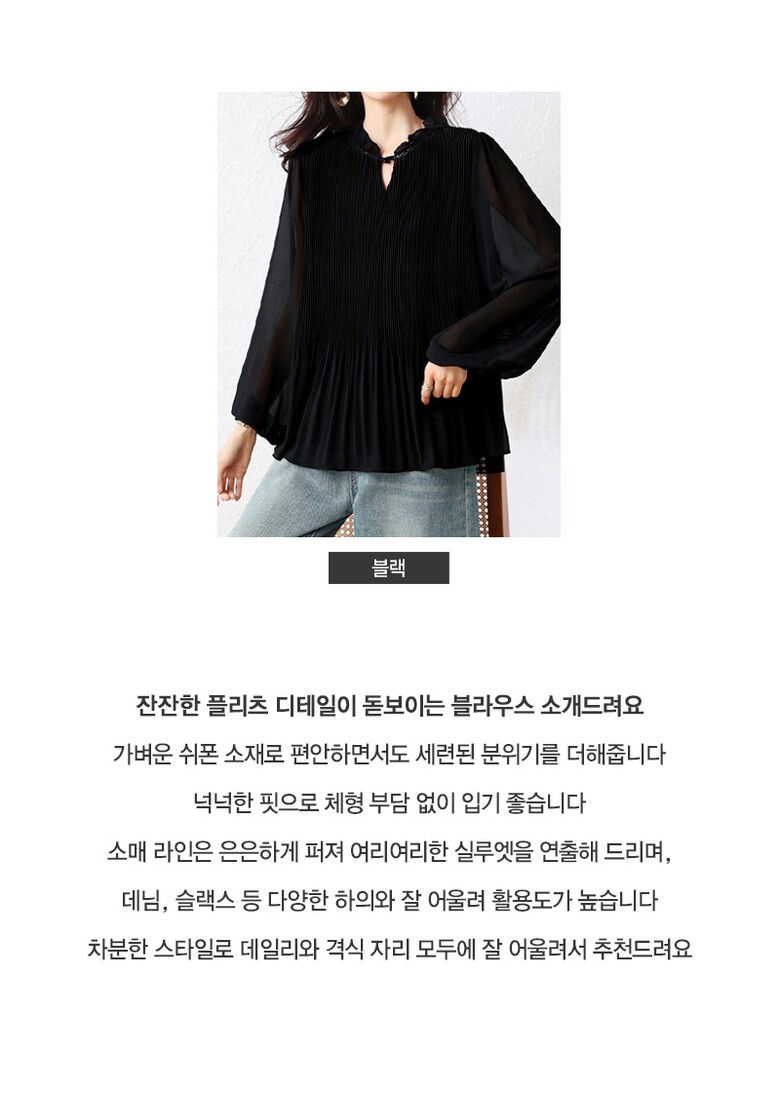 [~99까지]마터 넥 버튼 포인트 루즈핏 블라우스
