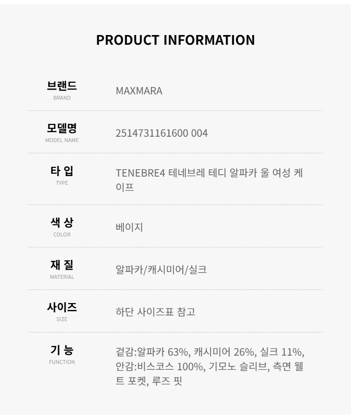 | 4. 제조사 | 막스마라/MACHO-병행수입 |