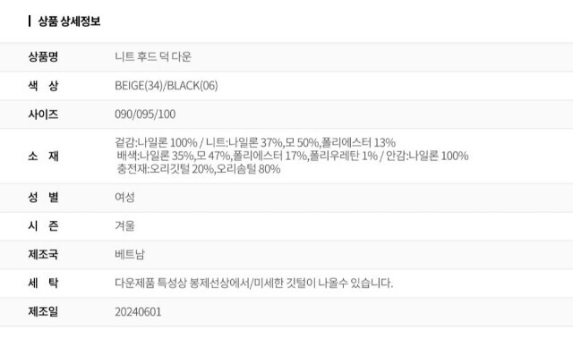 | 6. 세탁방법 및 취급시 주의사항 | 상품상세참조 |