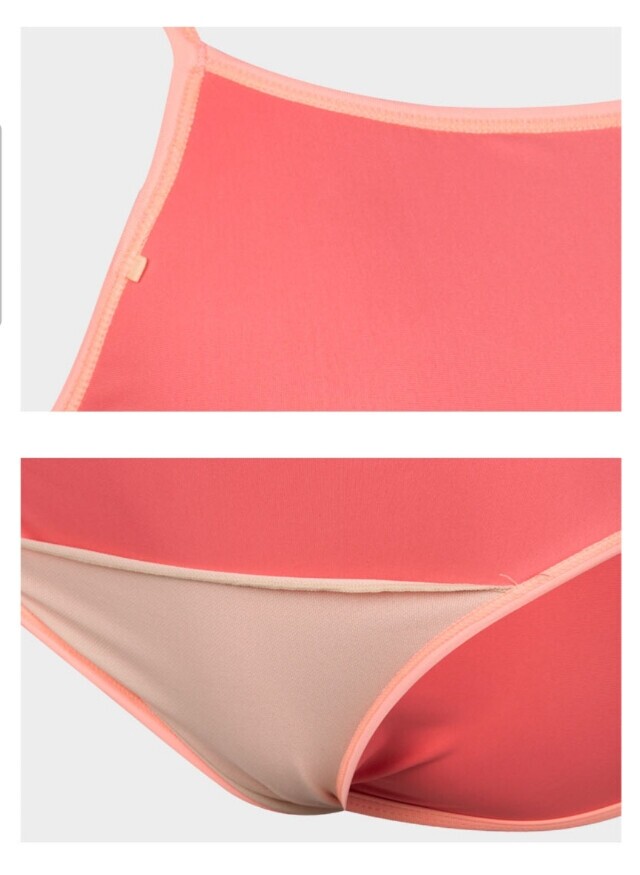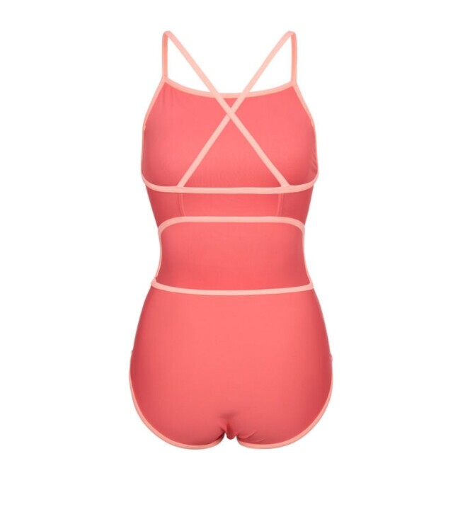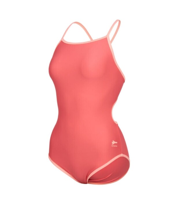 화사한 오렌지 컬러가 돋보이는 변형 X백 원피스 수영복입니다.