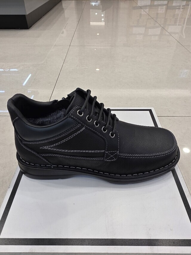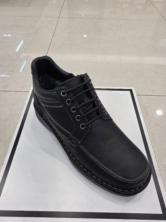 굽높이 약2.5cm의 높이에 천연소가죽소재를 특수공법으로 가공처리하여 제작된 남성 컴포트 털부츠 제품입니다
