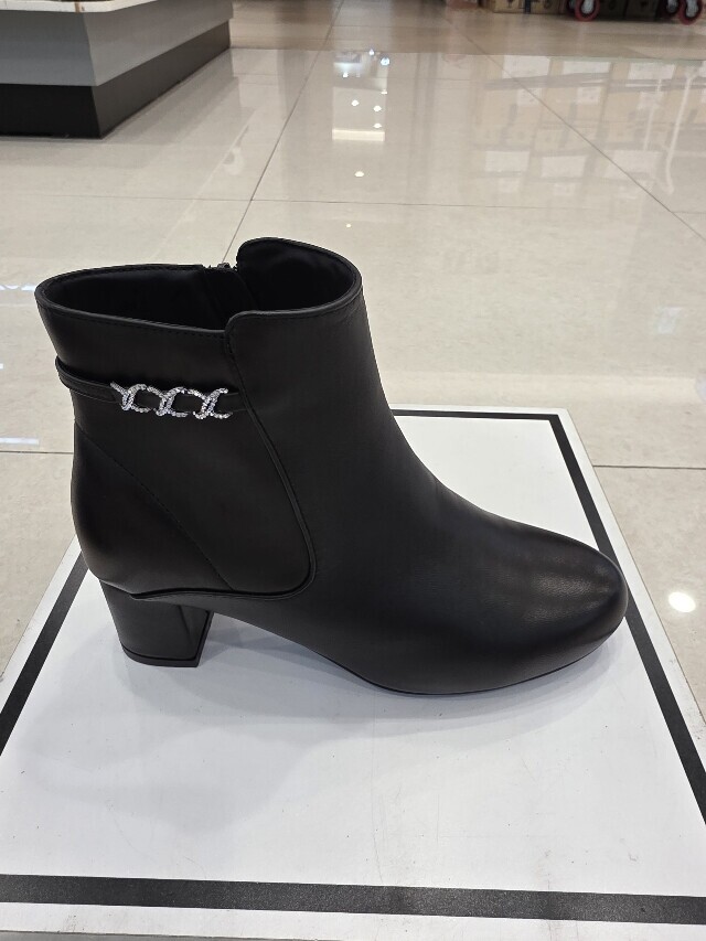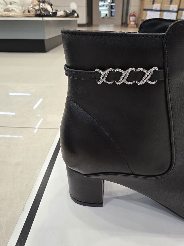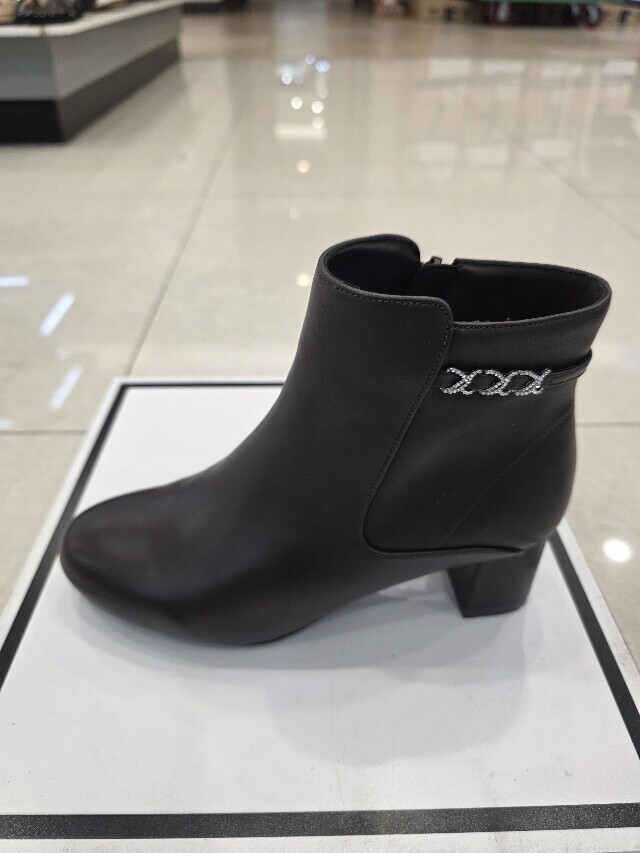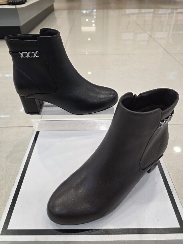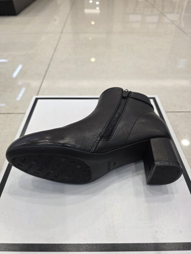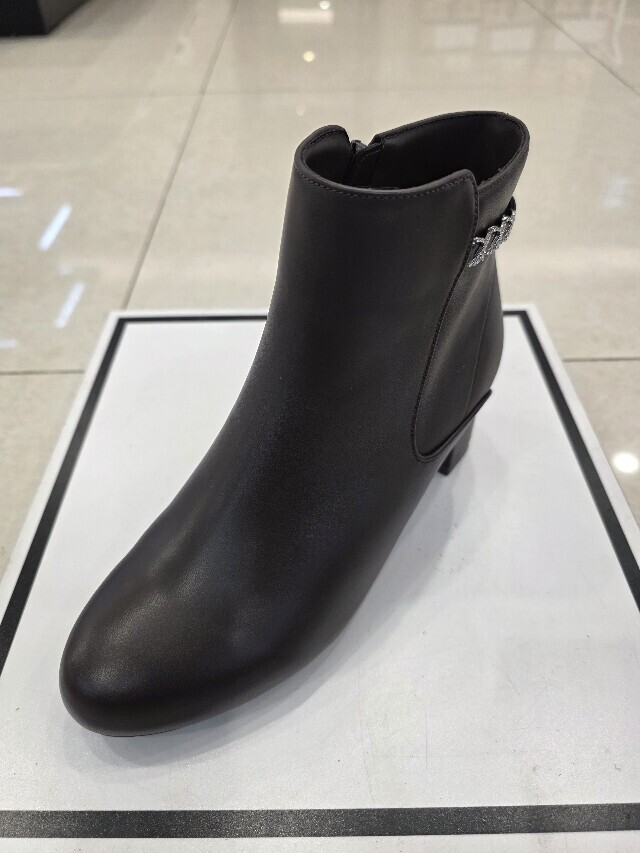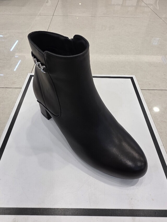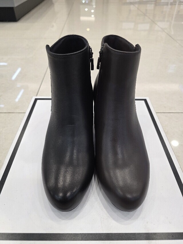 굽높이 약5cm의 높이에 천연염소가죽소재를 사용하여 제작된 여성 베이직 앵클부츠입니다