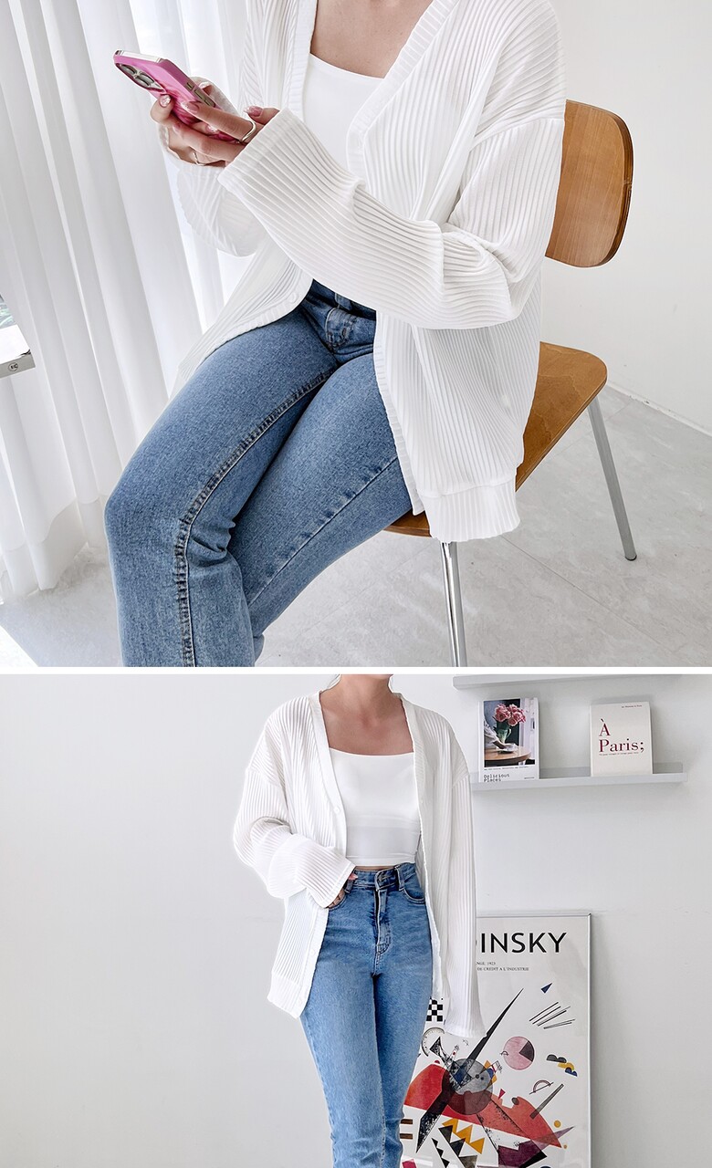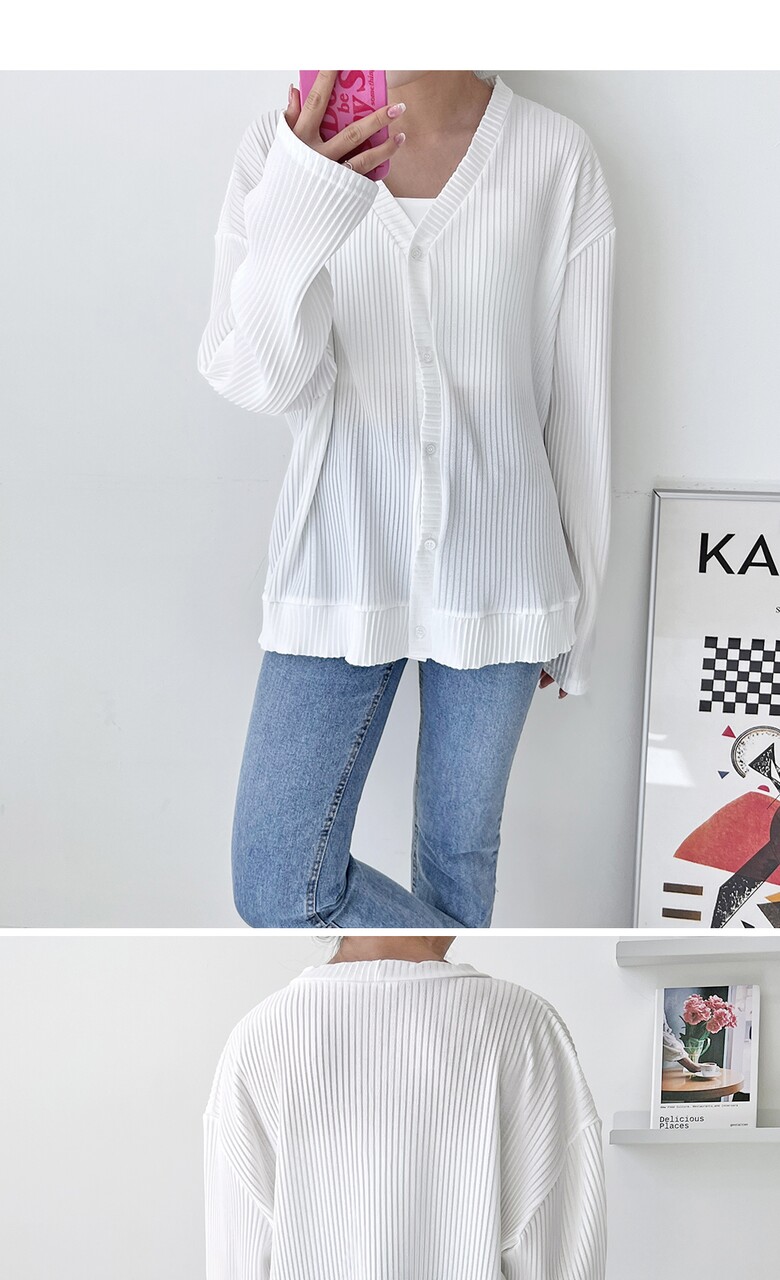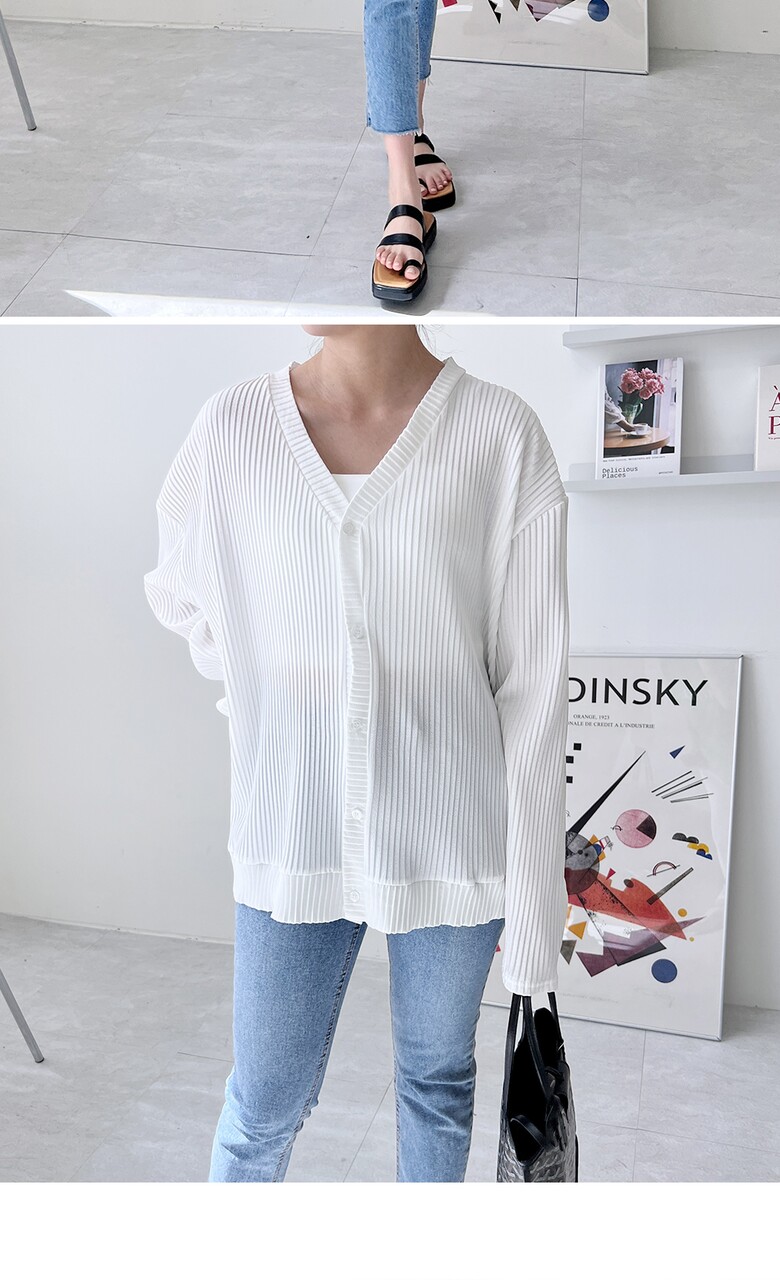 몬라 플리츠 브이넥 가디건 여름 총알 원단 폴리 얇은 남녀 공용 카디건
