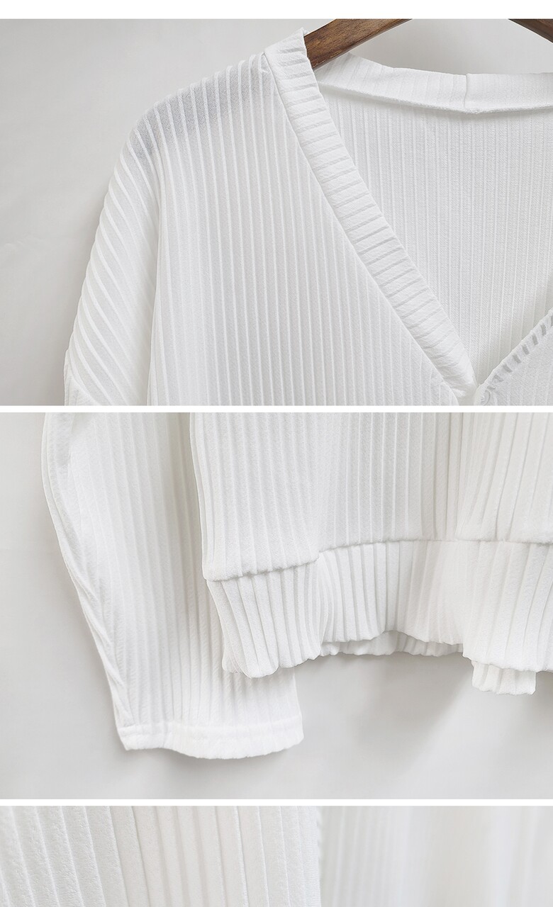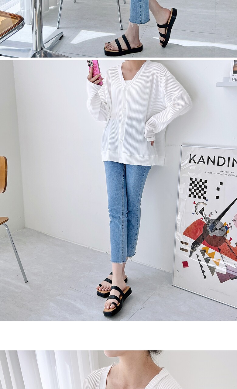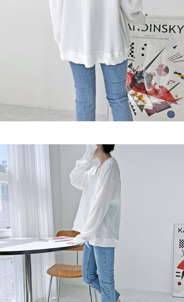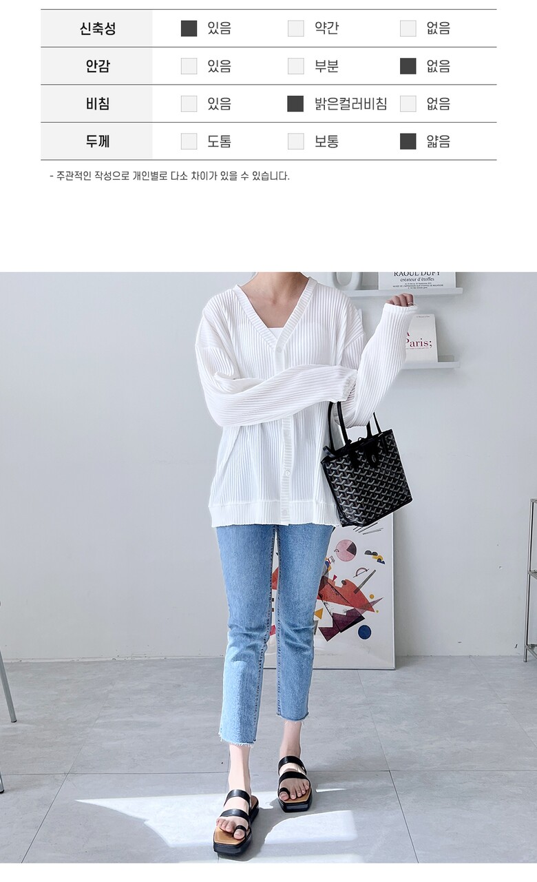 몬라 플리츠 브이넥 가디건 여름 총알 원단 폴리 얇은 남녀 공용 카디건