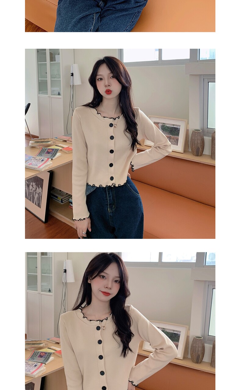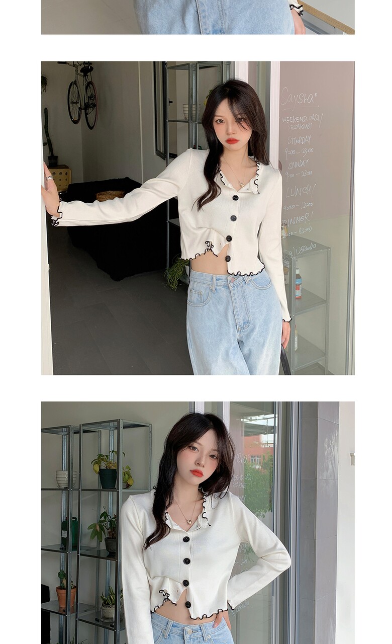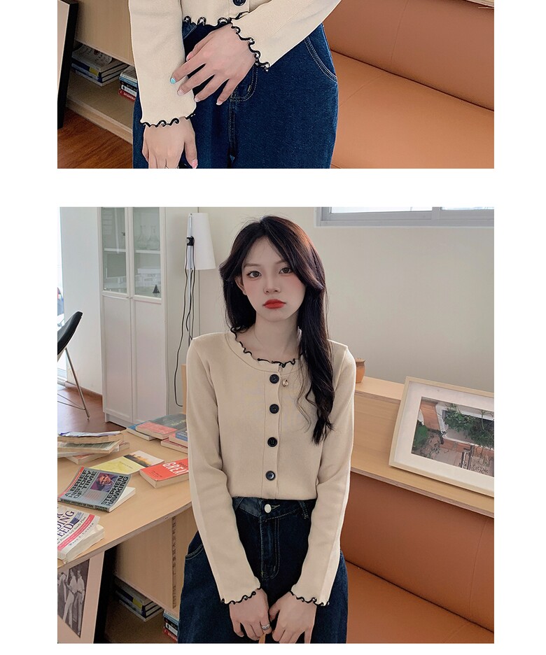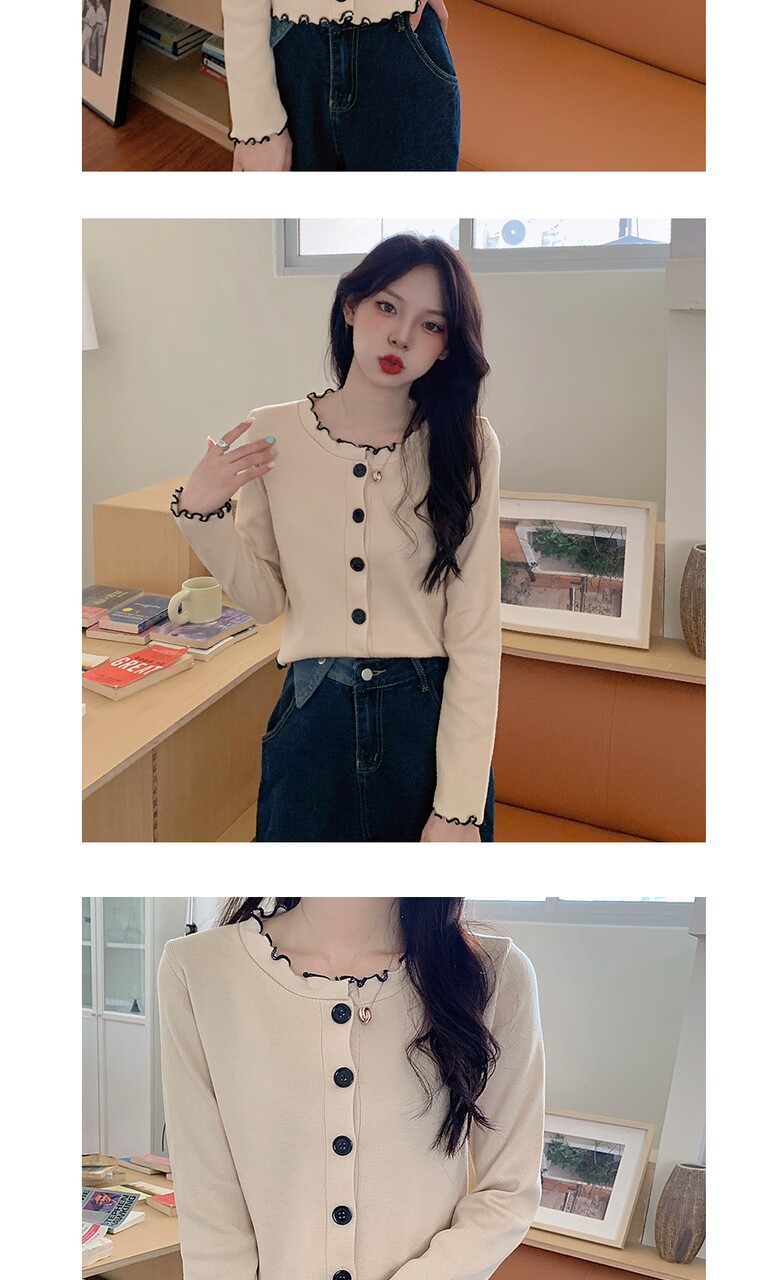 배색 프릴 니트 이너 가디건 여성 간절기 여자 카디건