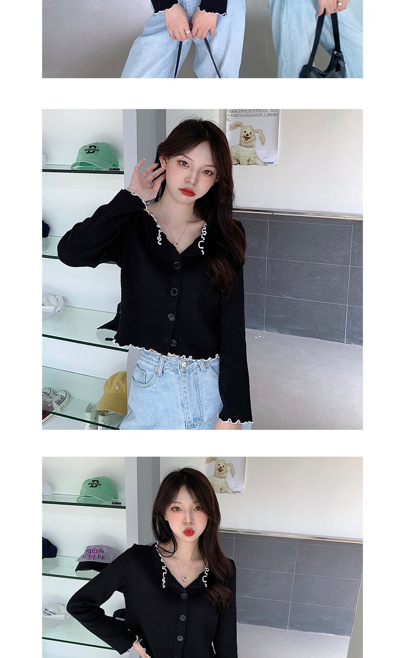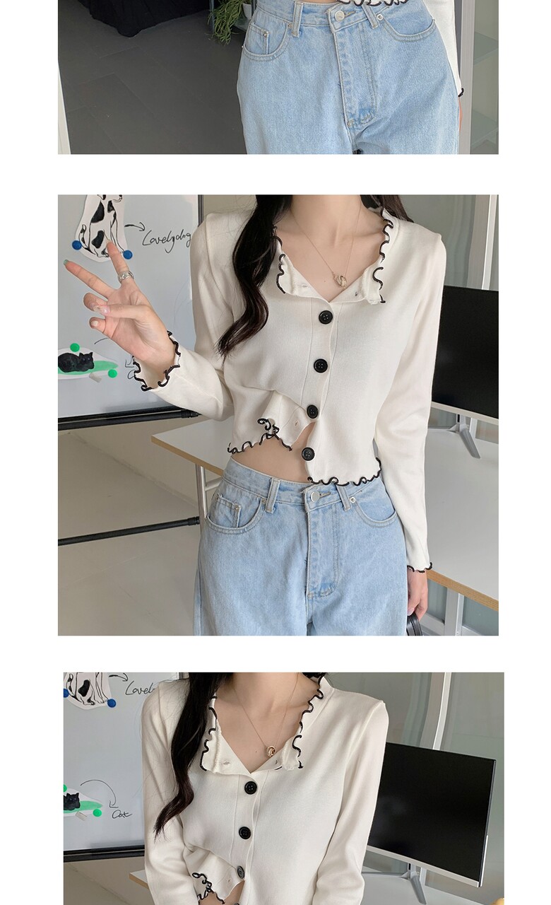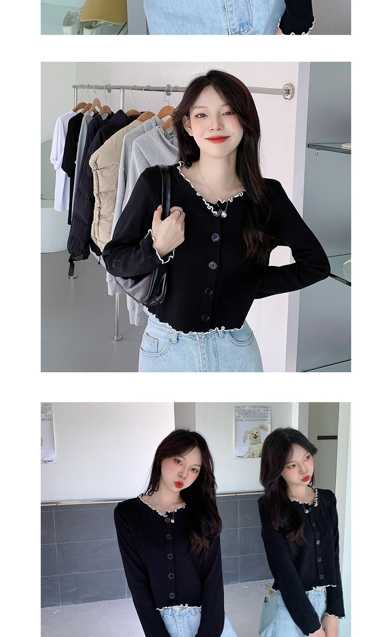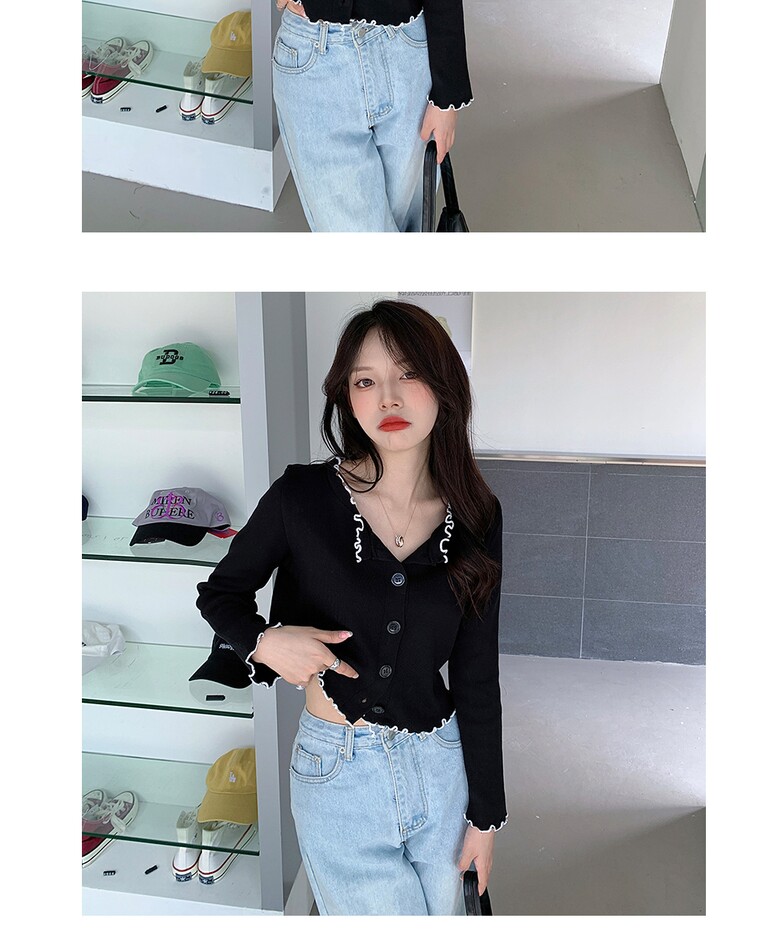 배색 프릴 니트 이너 가디건 여성 간절기 여자 카디건