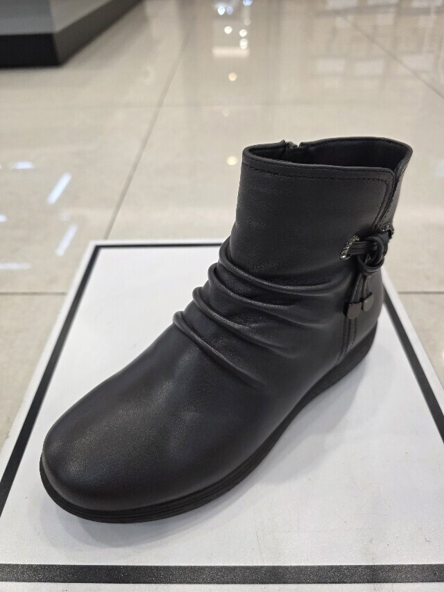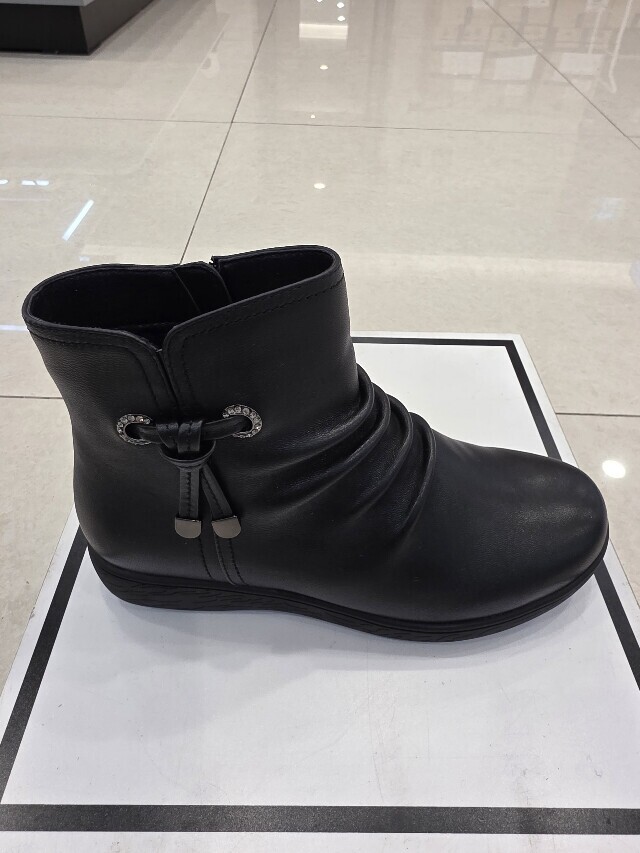 굽높이 약3cm의 높이에 천연양가죽 소재를 사용하여 제작된 여성 앵클부츠상품입니다
