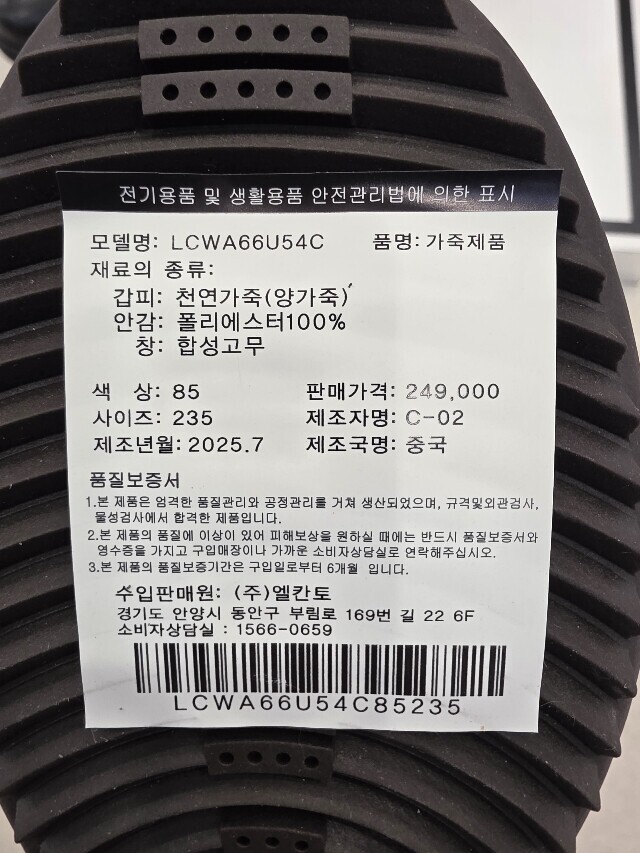 | 1. 제품 소재 (운동화인 경우에는 겉감, 안감을 구분하여 표시) | 상품상세참조 |