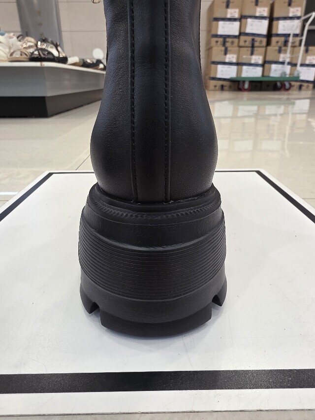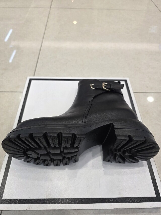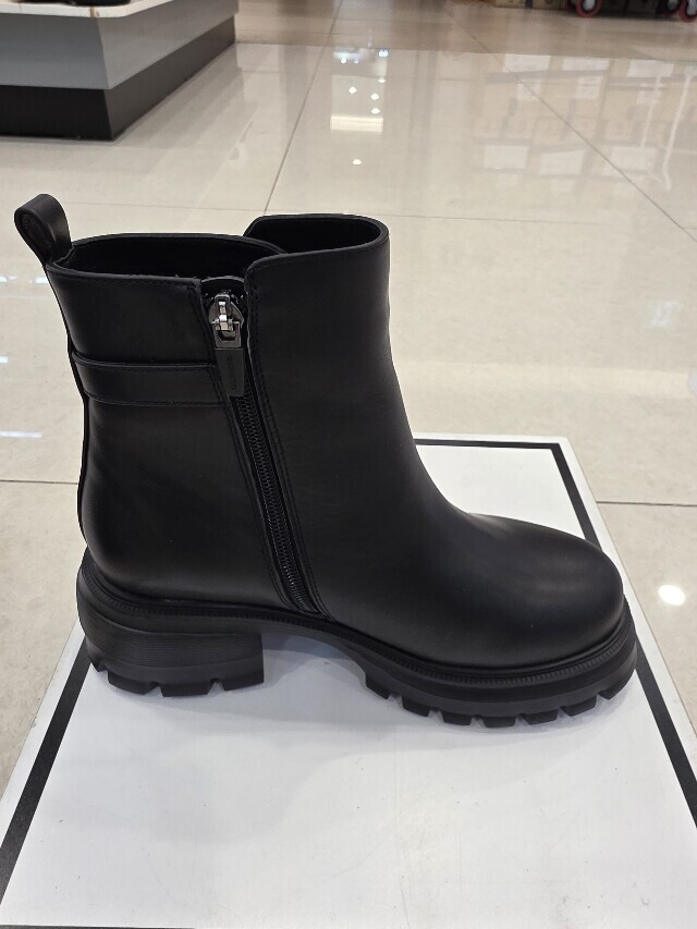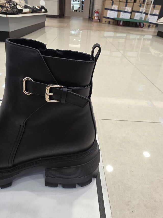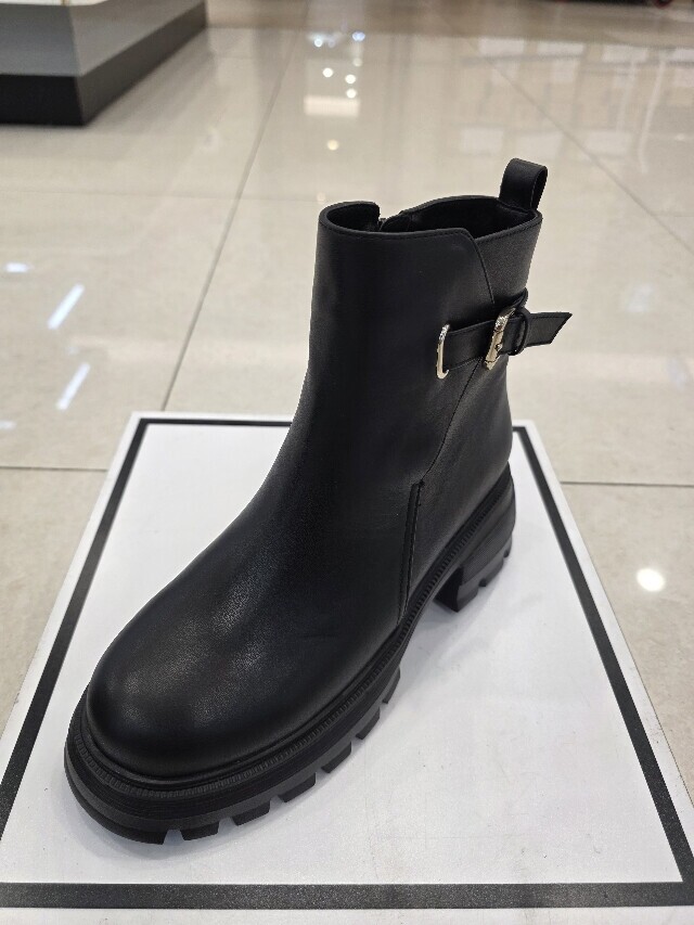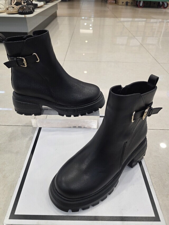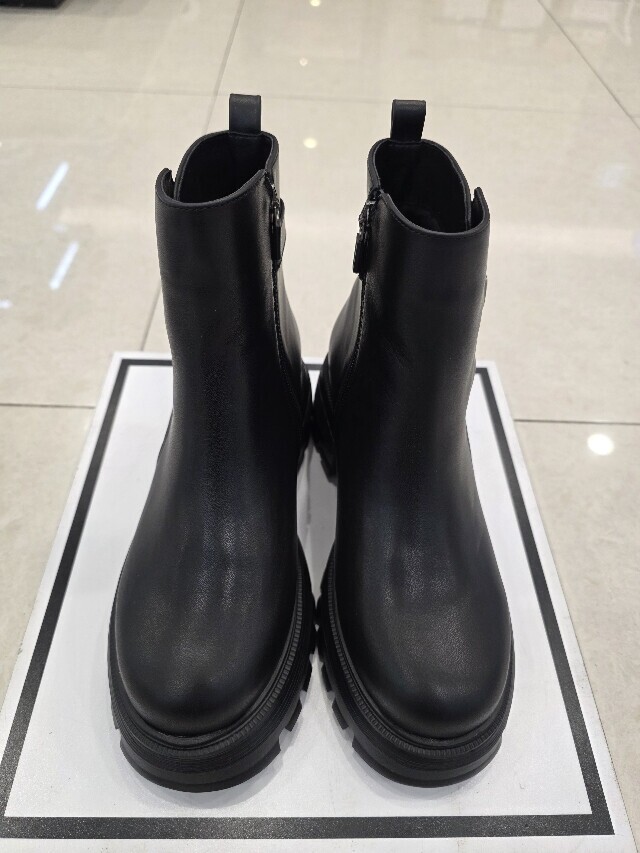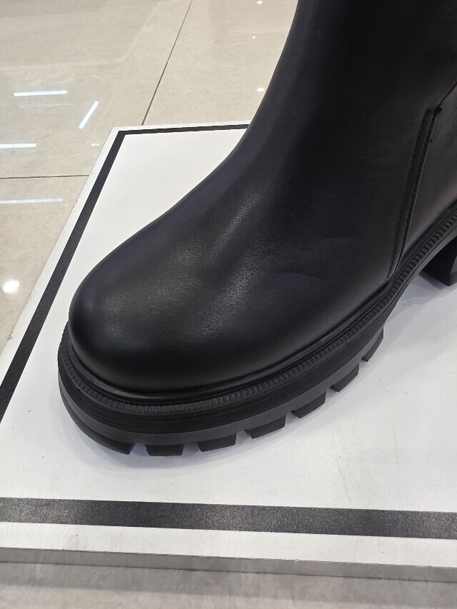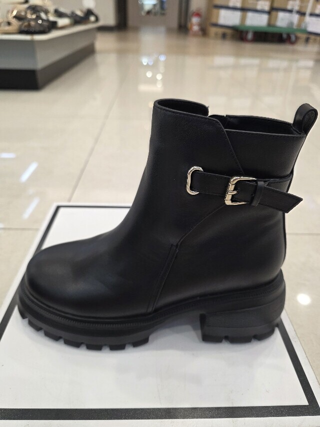 굽높이 약6cm의 높이에 천연소가죽소재를 사용하여 제작된 여성 경량 청키 앵클부츠입니다