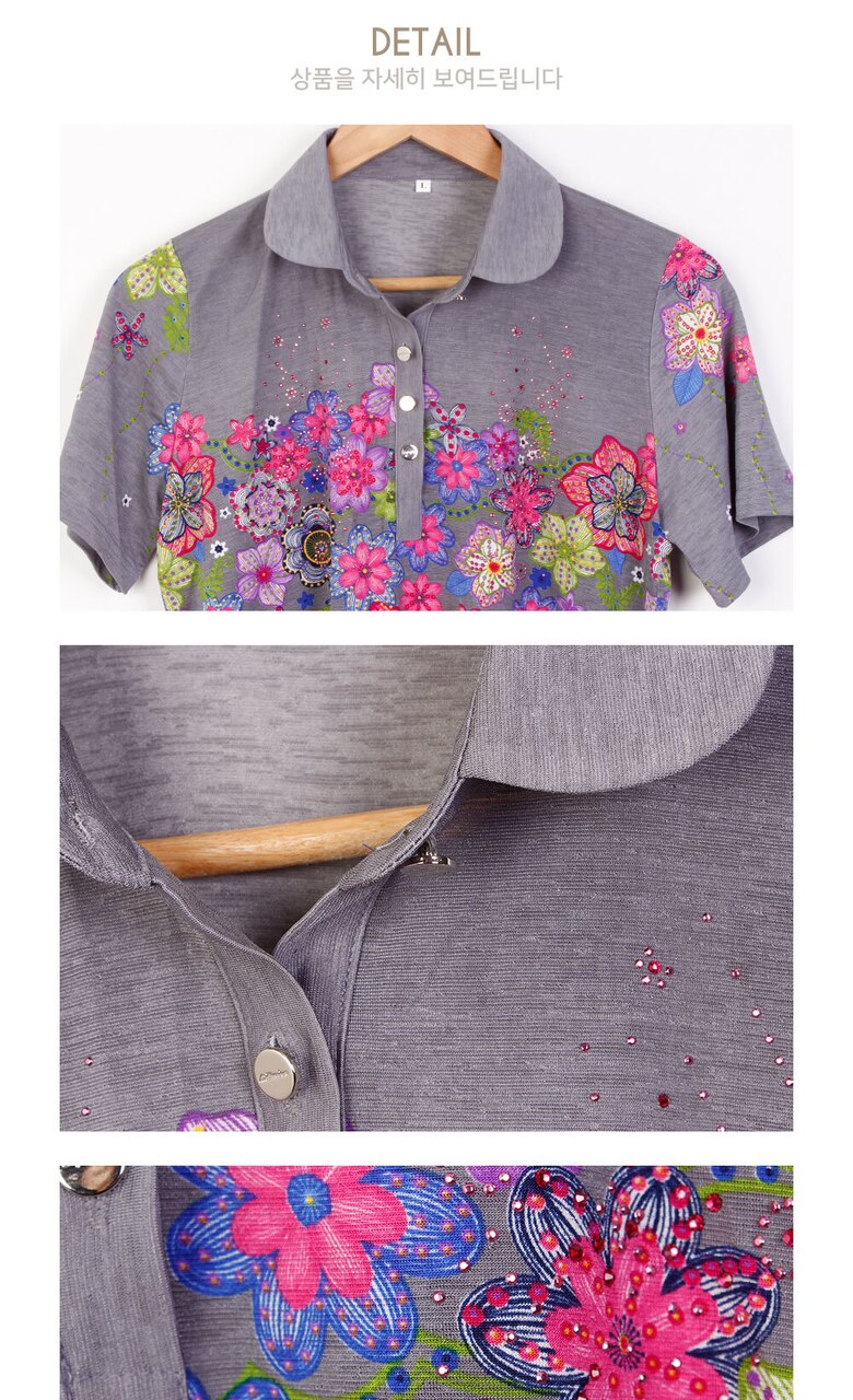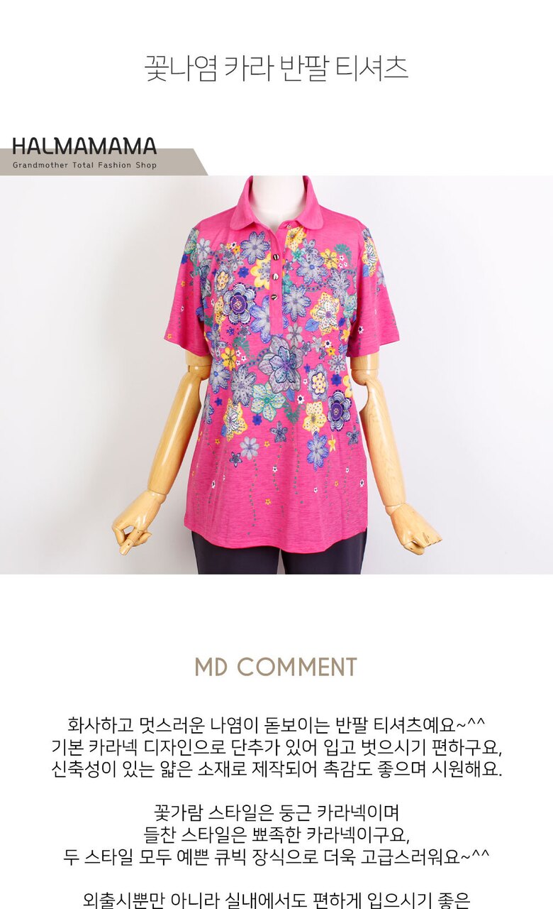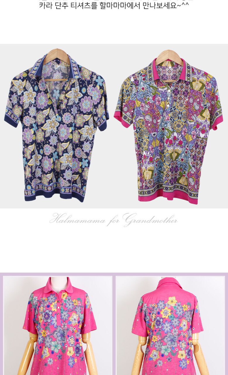 꽃나염 카라 반팔 티셔츠꽃 카라반팔 중년 할머니옷 선물 봄여름 요양원 의류 플라워