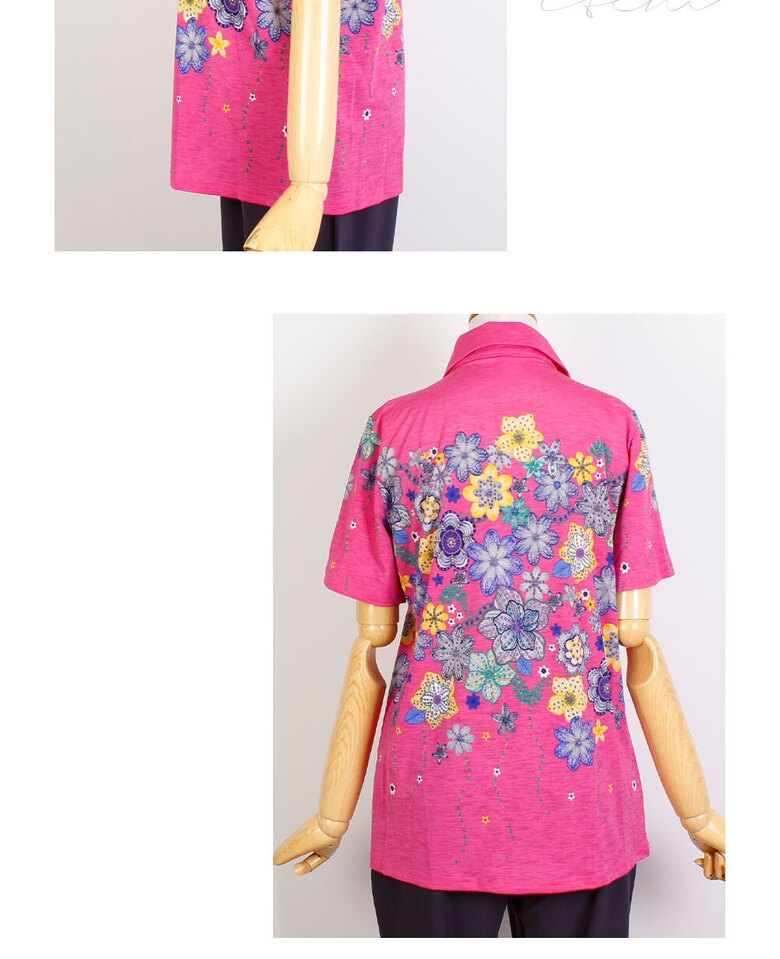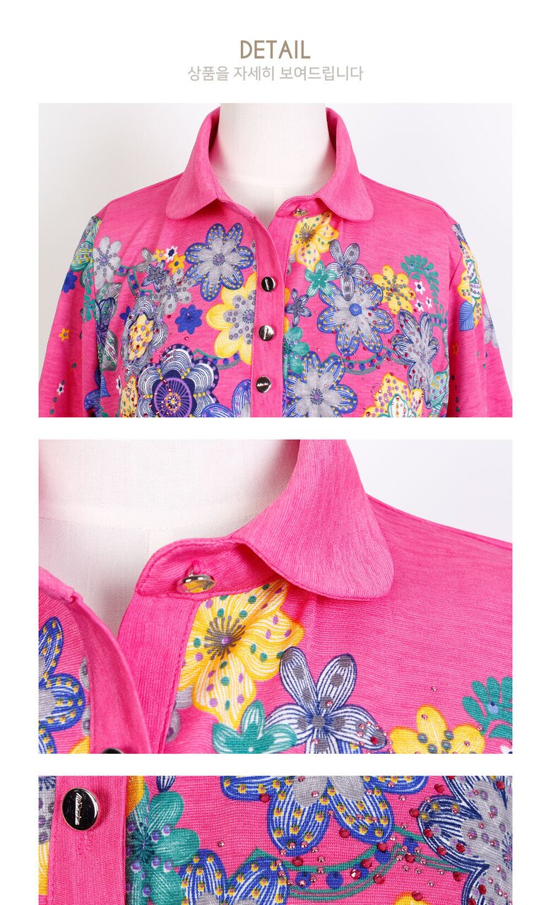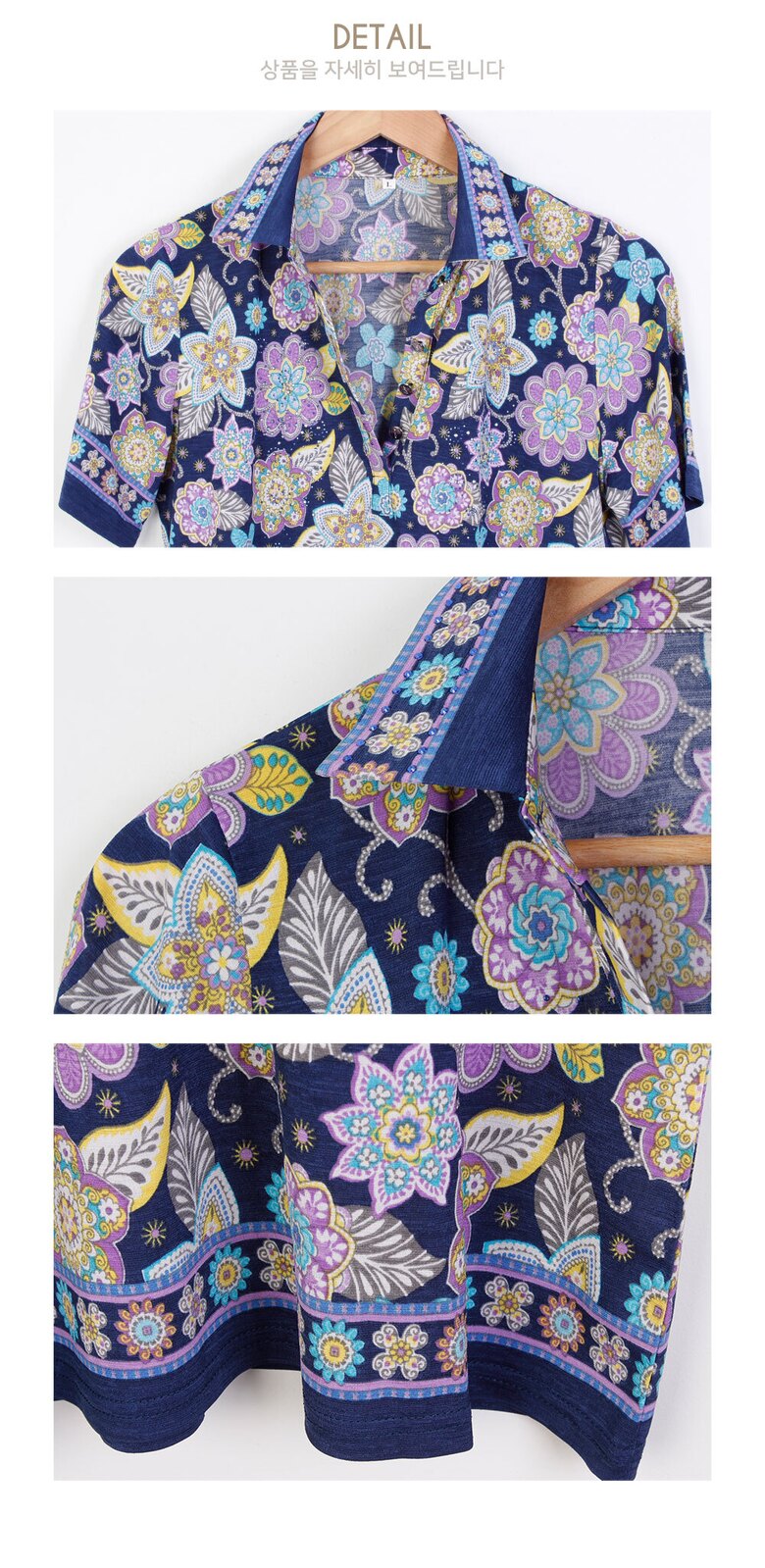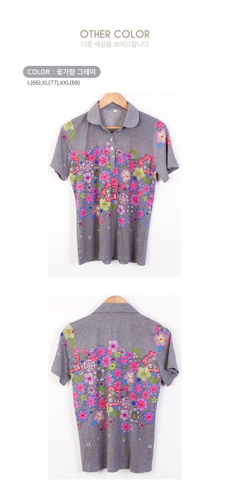 꽃나염 카라 반팔 티셔츠꽃 카라반팔 중년 할머니옷 선물 봄여름 요양원 의류 플라워
