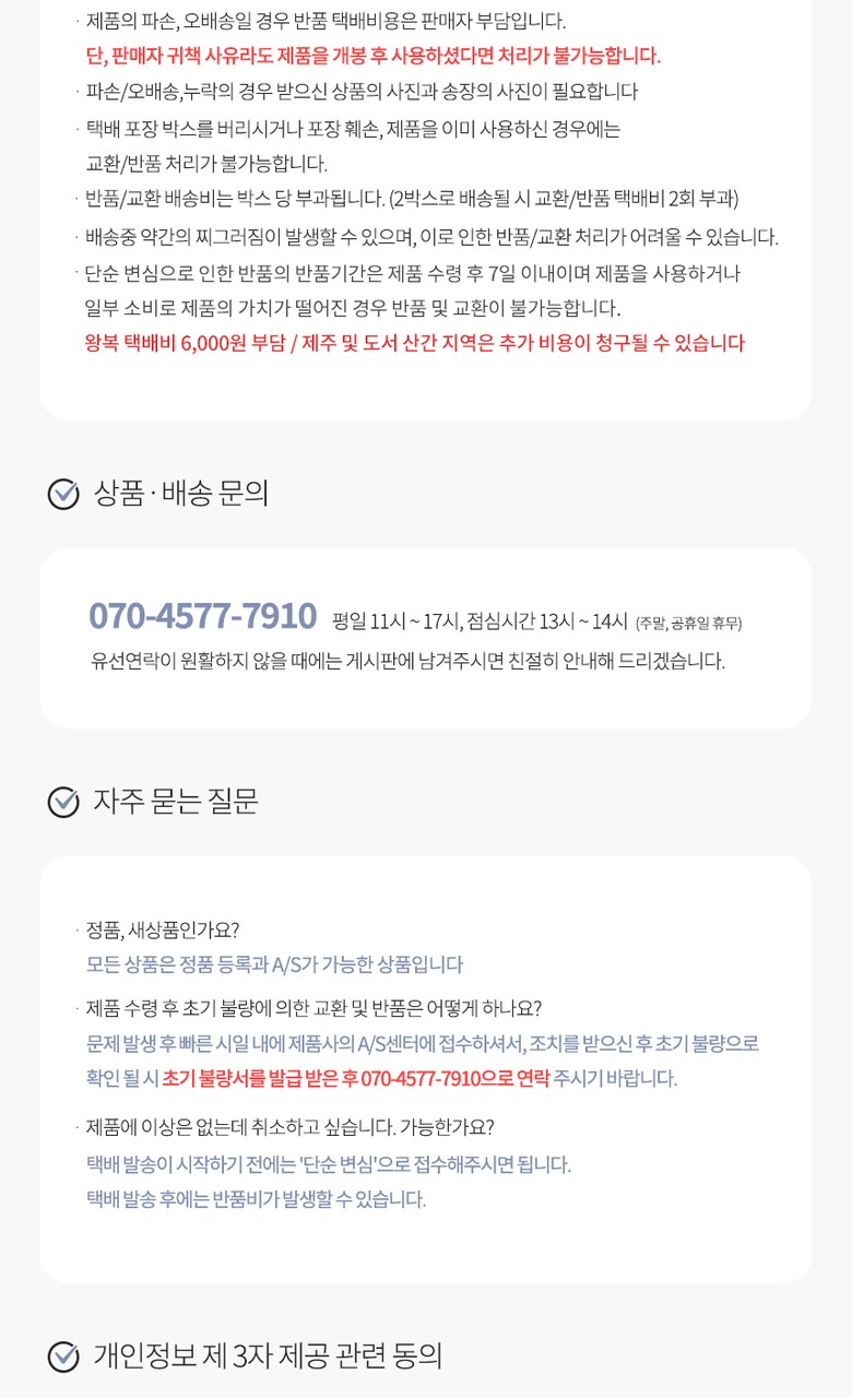 상품불량에 의한 반품, A/S, 품질보증 및 피해보상 등에 관한 사항은 소비자 분쟁해결기준(공정거래위원회 고시) 구매자가 미성년자인 경우에는 상품 구입시 법정대리인이 동의하지 아니하면 미성년자 본인 또는 법정대리인이 구매취소 할 수 있습니다. |