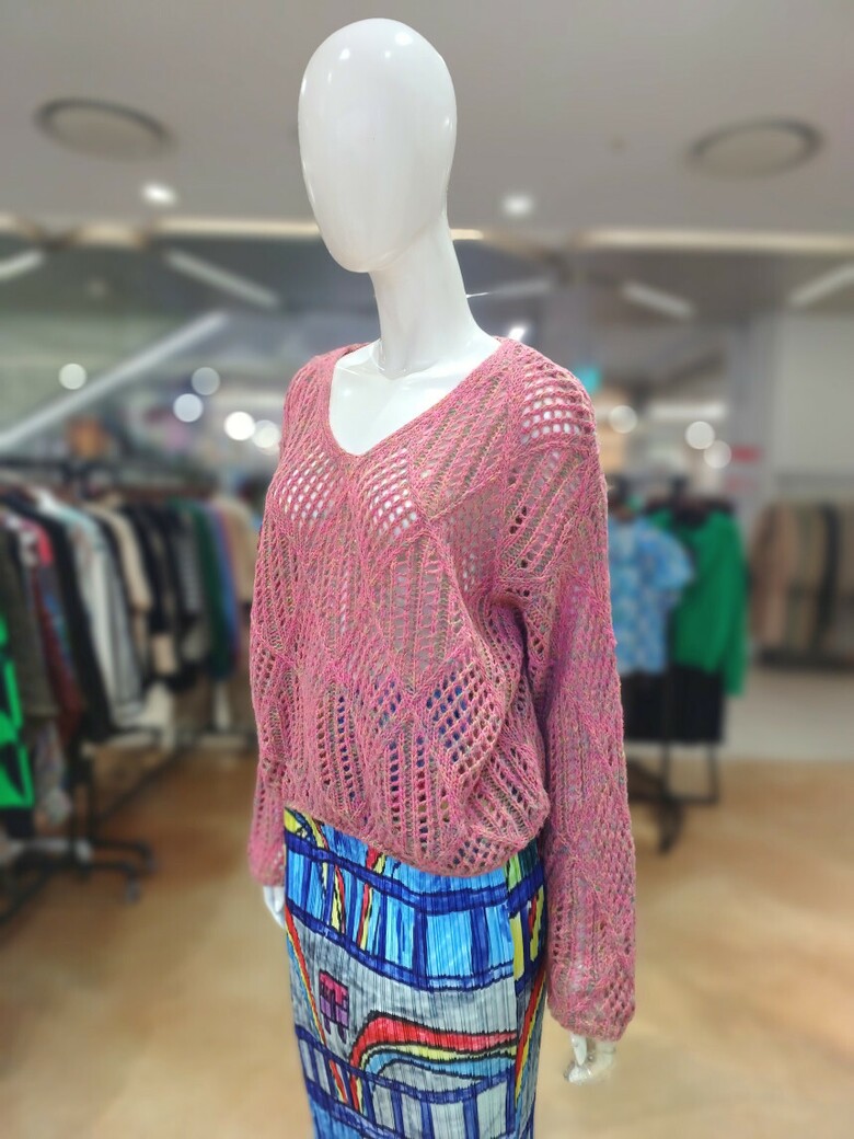 르니앤맥코이 브이넥 루즈핏 그물 펀칭 니트MM11KN711