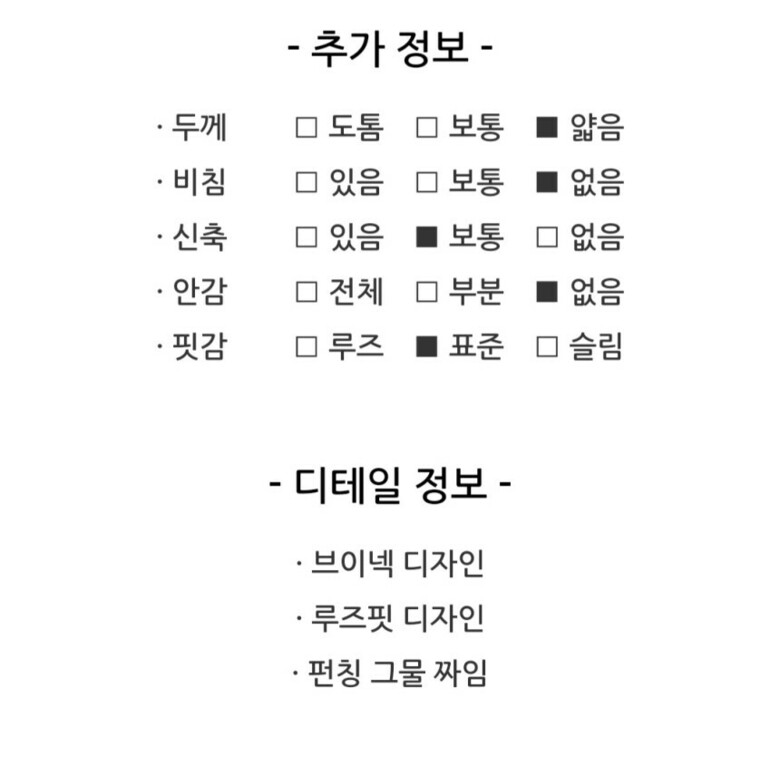 | 6. 세탁방법 및 취급시 주의사항 | 상품상세참조 |