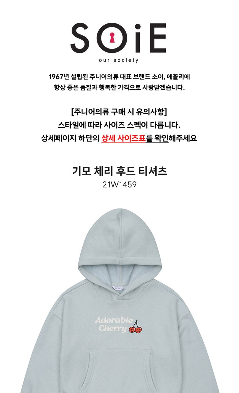 여아 기모 체리 후드 티셔츠 21W1459_MT