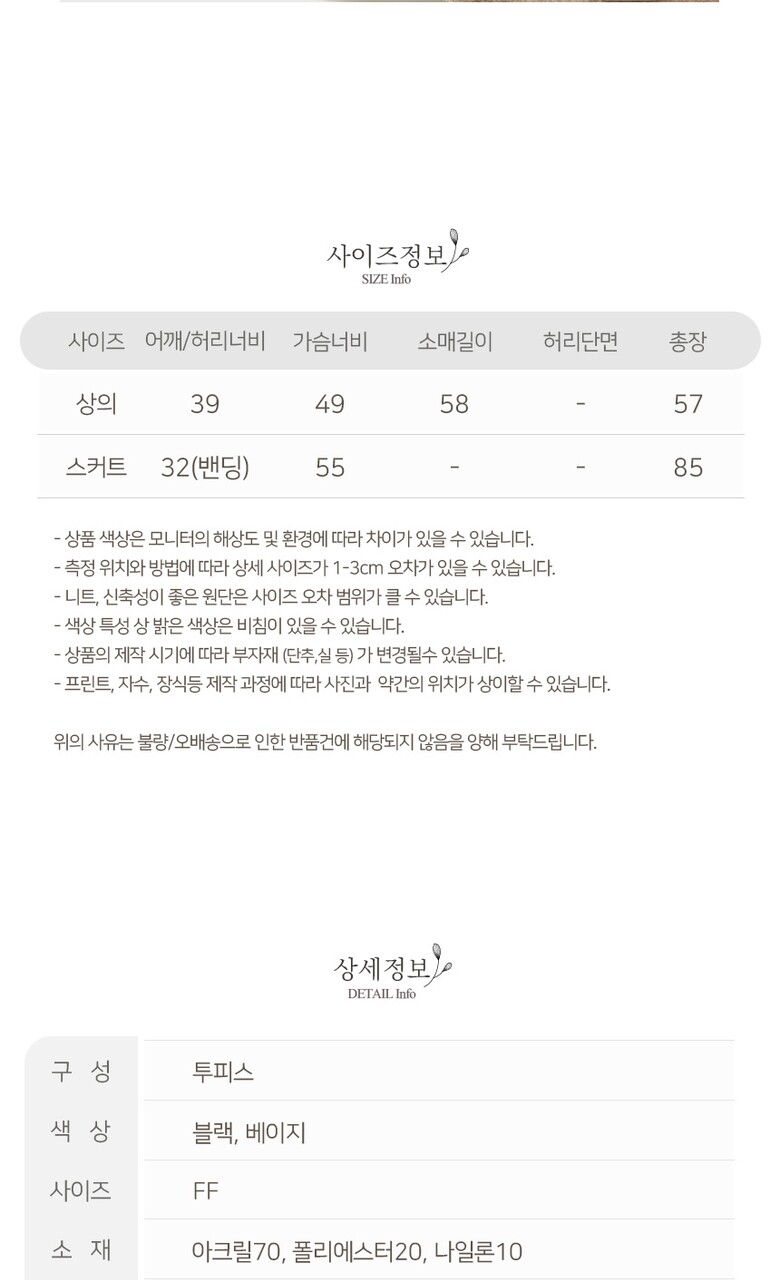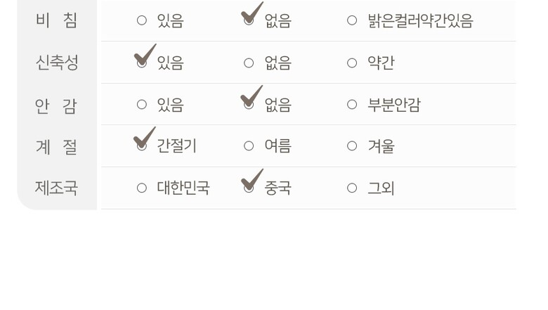 • 처음 배송된 상품상태와 다를 경우(세탁/착용 후 외출하신 경우) 반품이 불가합니다.