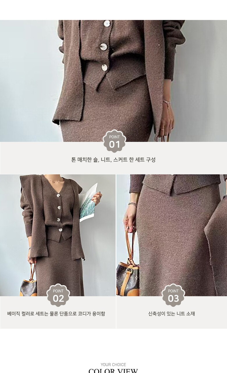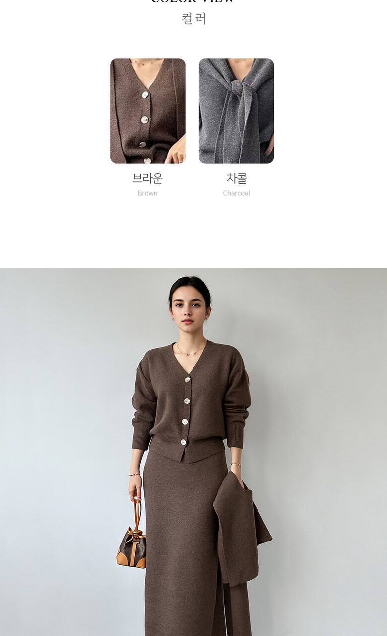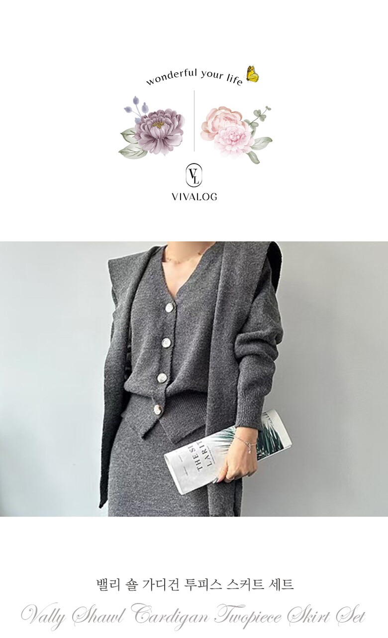 [비바로그] 밸리 숄 가디건 투피스 스커트 세트