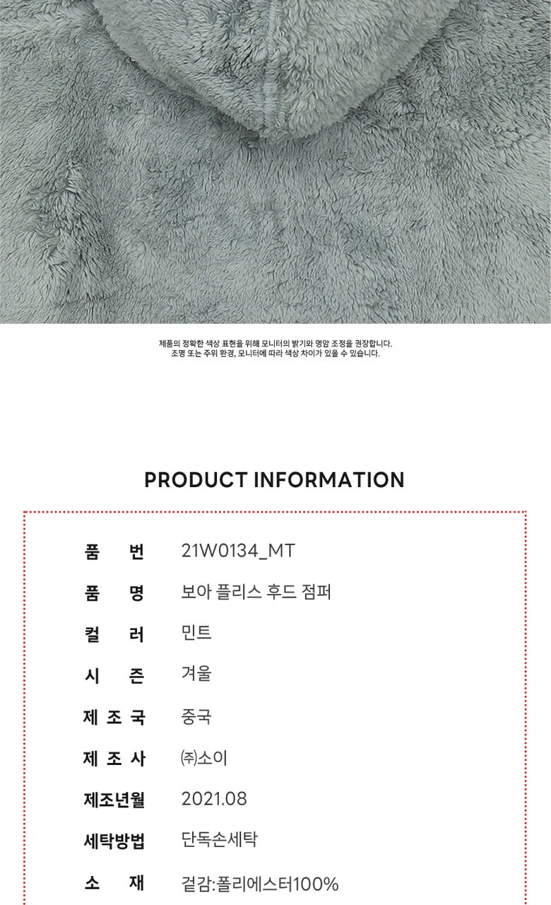 남아 보아 플리스 후드 점퍼 21W0134_MT