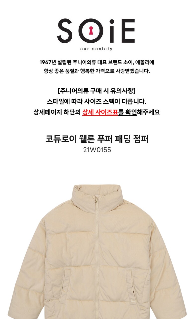 여아 코듀로이 웰론 푸퍼 패딩 점퍼 21W0155_BE