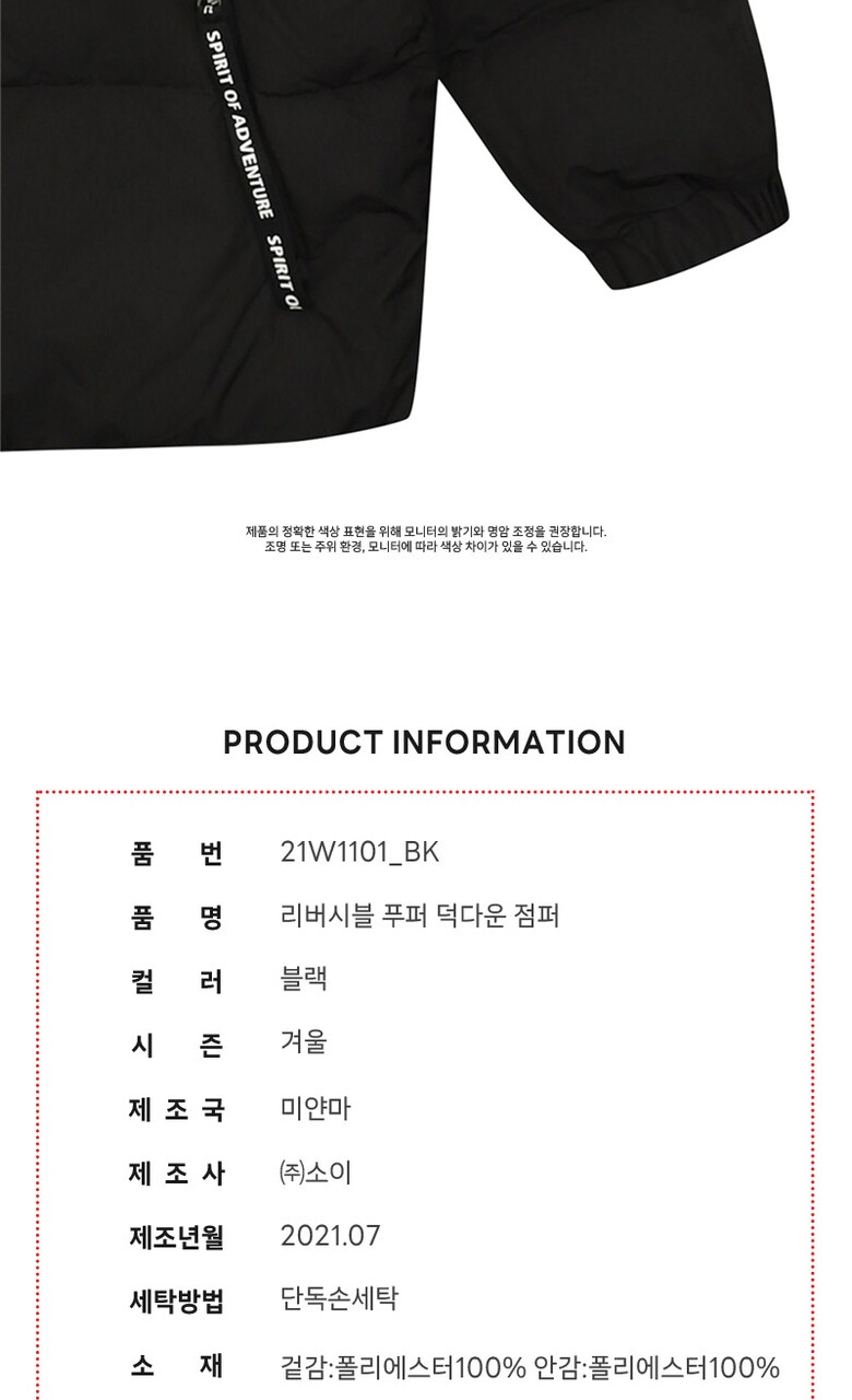 남아 리버시블 푸퍼 덕다운 점퍼 21W1101_BK