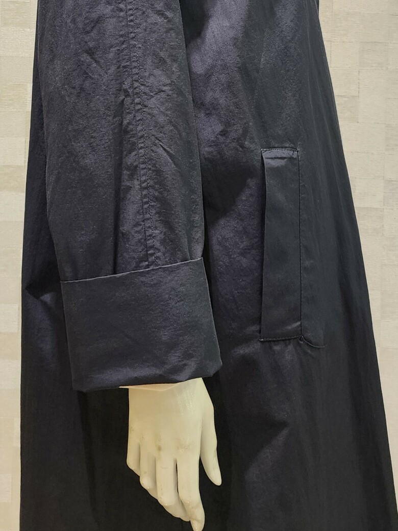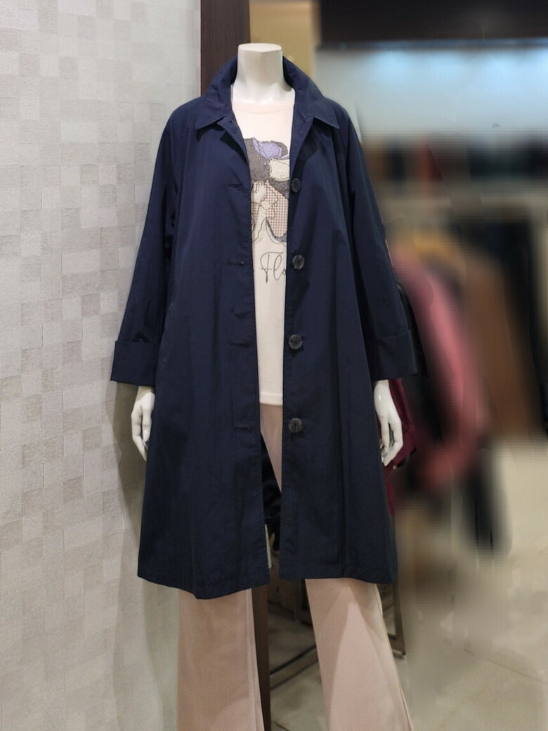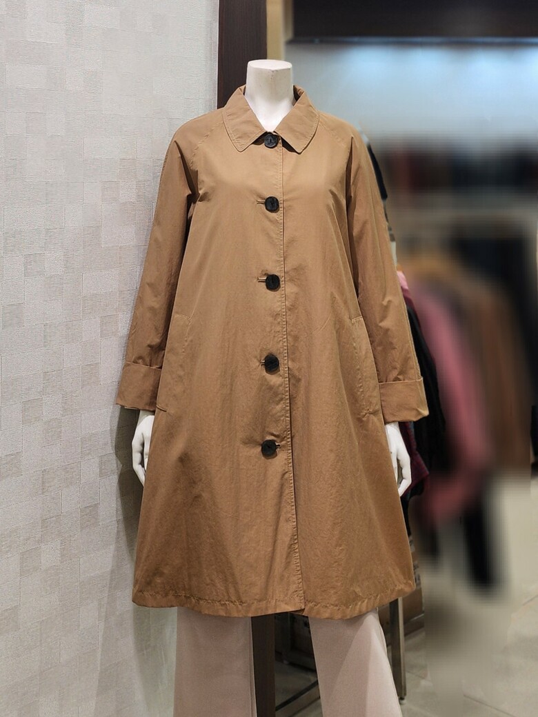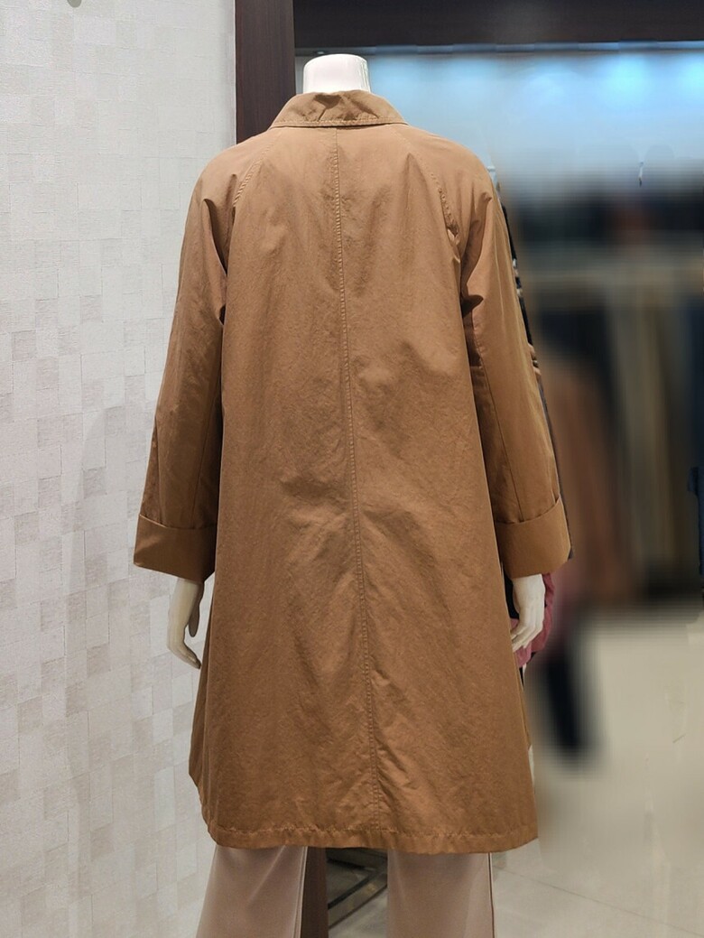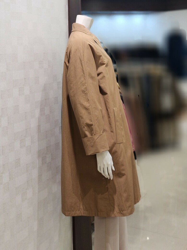 차분하게 툭 떨어지는 핏의 단정한 트렌치코트에요.