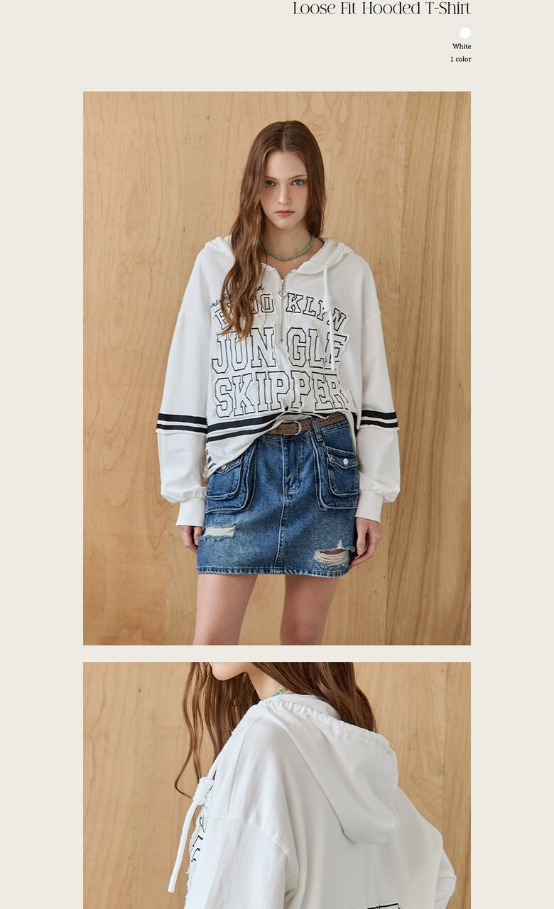 빈티지한 무드를 주는 반집업 후드 티셔츠입니다.