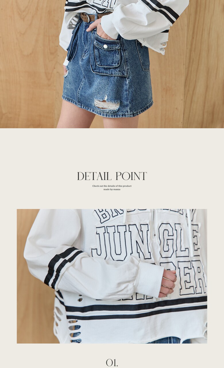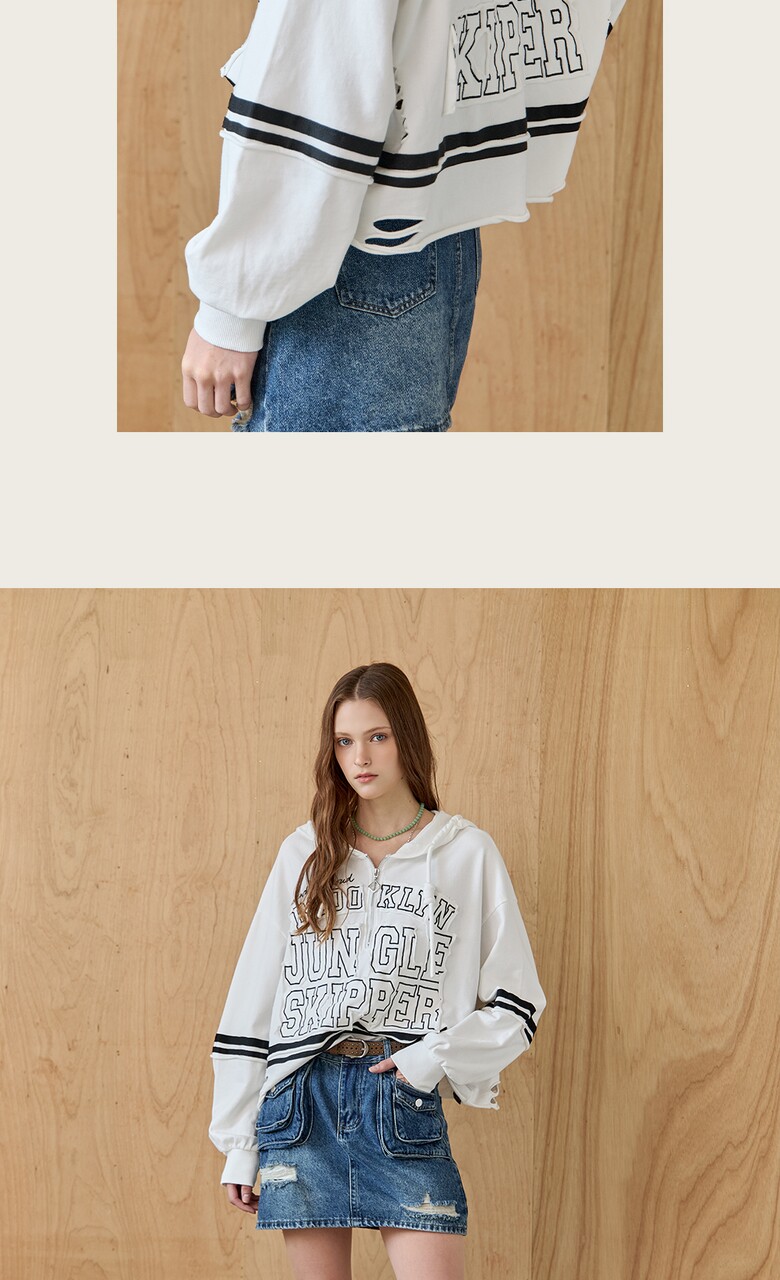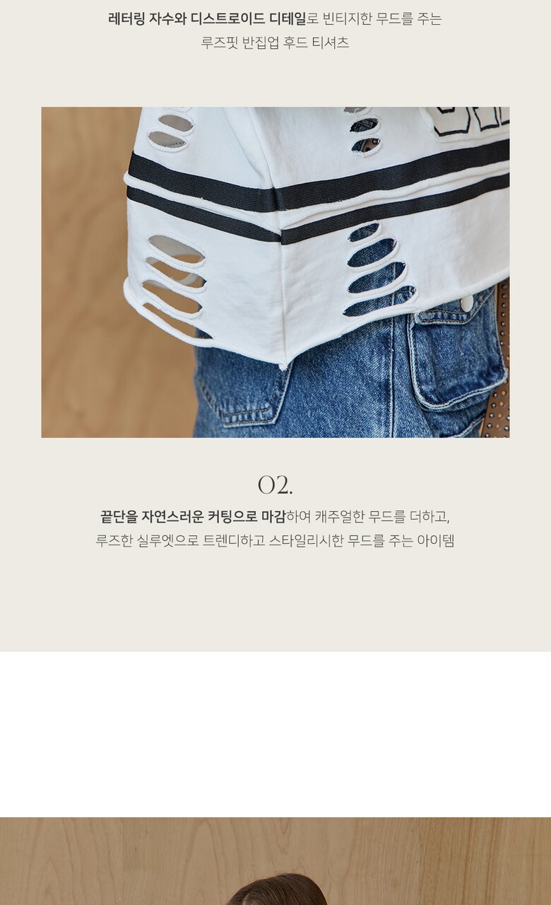 레터링 자수와 디스트로이드 디테일로