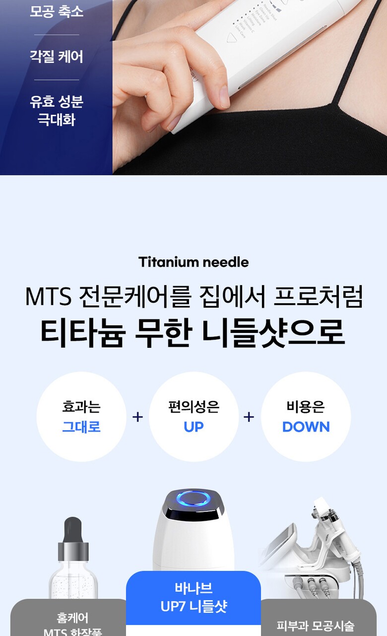 UP7 니들샷 뷰티디바이스-모공 케어 니들 프리 MTS 홈케어 피부마사지기