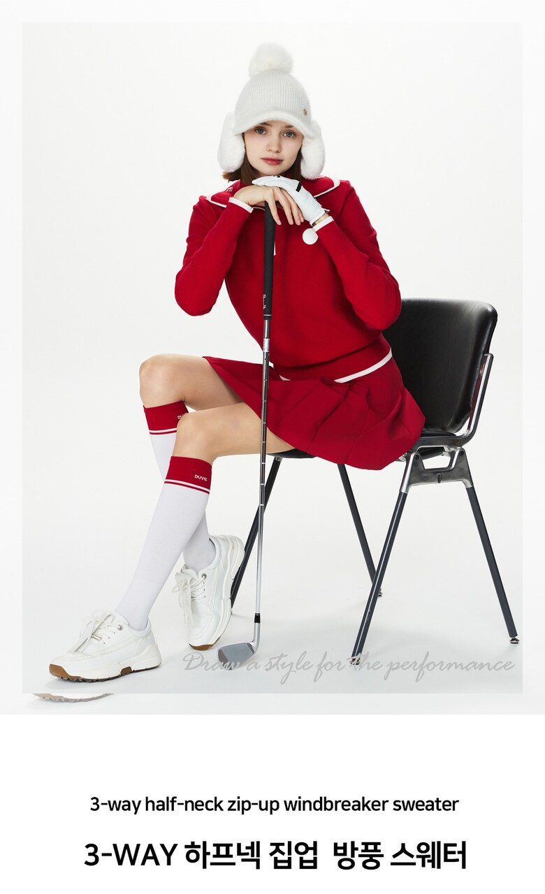듀빅 여성 3-WAY 하프넥 방풍 니트스웨터 DF4WSW286RD