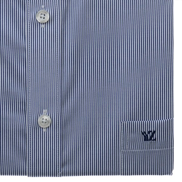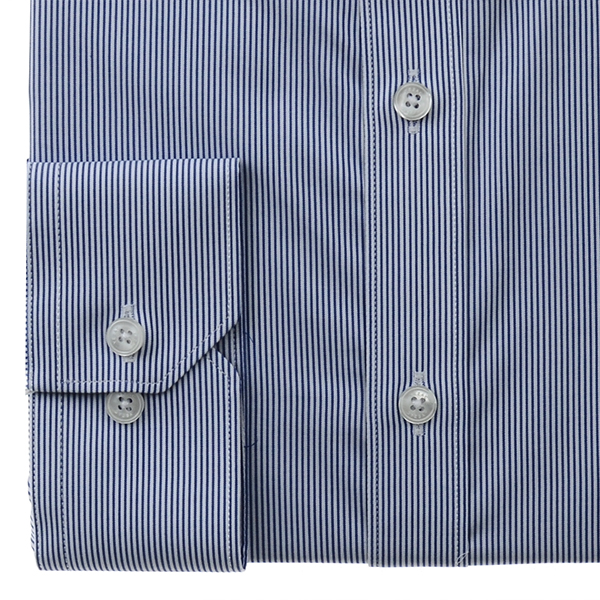 코튼/폴리 혼방으로 구김이 적고 형태 안정성이 뛰어나 관리가 용이한 핀스트라이프 패턴의 빅사이즈 일반핏 긴소매