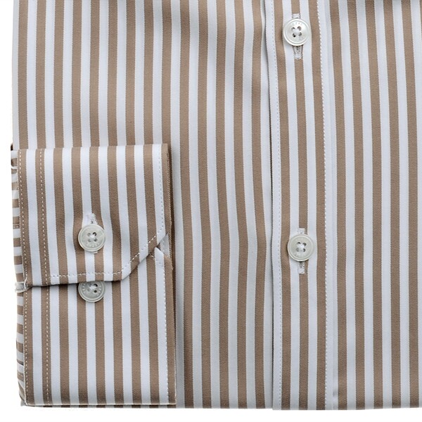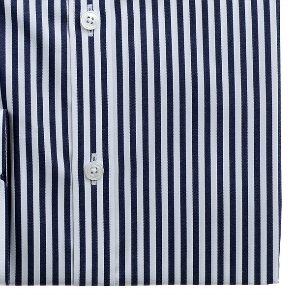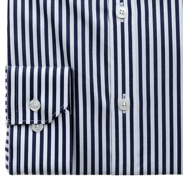 통기성과 흡수성이 뛰어난 레이온과 내구성이 탁월한 코튼의 혼용으로쾌적하고 편안한 착용감을 전해주는 런던 스트라이프 패턴이클랙식하면서도 세련된 감성으로 표현 되는 멋스러운 슬림핏 긴소매