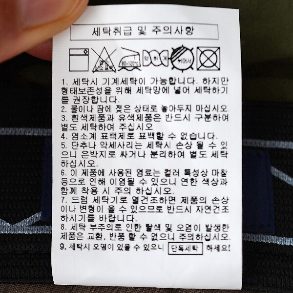| 6. 세탁방법 및 취급시 주의사항 | 손세탁-단독세탁 |