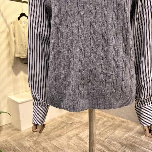 AOZ4HB37J_꽈베기 니트 배색 카라 셔츠