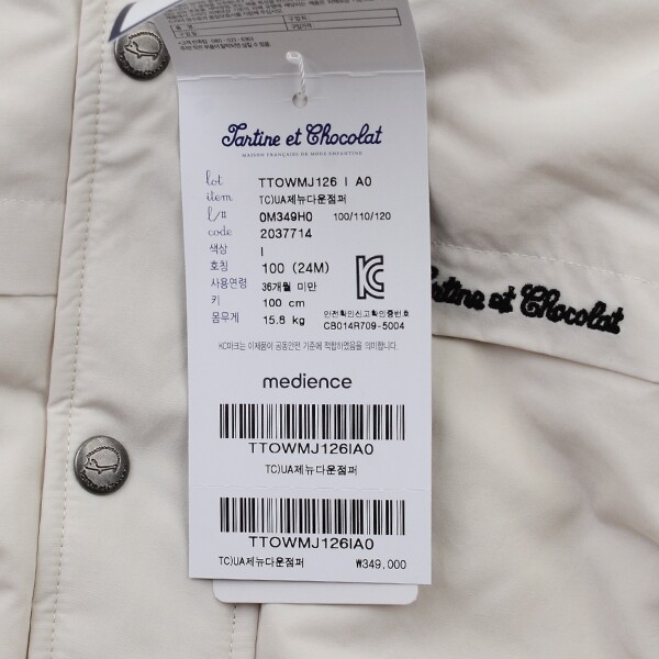 | 5. 재질 (섬유의 경우 혼용률) | 겉감 폴리에스터 53% 면 25% 나일론 22% 안감1.2.3.배색 폴리에스터 100% 충전재오리 솜털 80% 깃털 20% 프리밍 아크릴 83% 폴리에스터 17% |