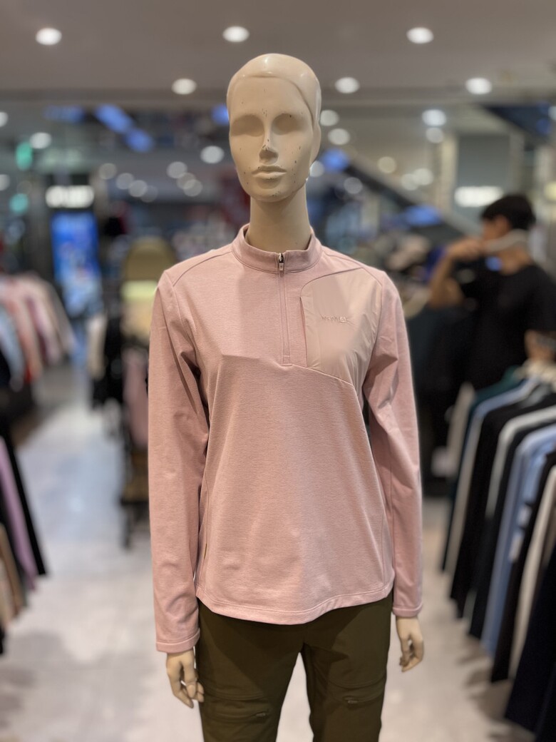 - 패스파인더 라인의 여성용 우븐 하이브리드 목크 에리 집업 티셔츠
