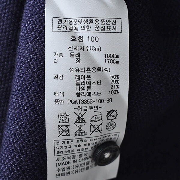 제품소재 : 겉감 - 레이온 50%, 폴리에스터 29%, 나일론 21%배색 - 폴리에스터 100%