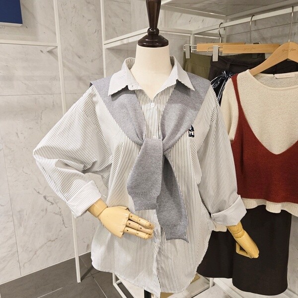 F5CSET001A_니트 숄 곰돌이 셔츠 세트