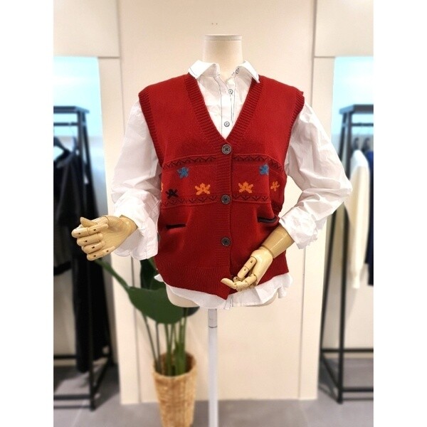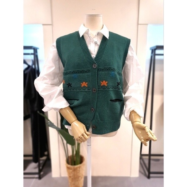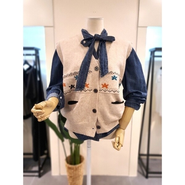 KNVTP905BE_버튼 자카드 니트베스트 베이지