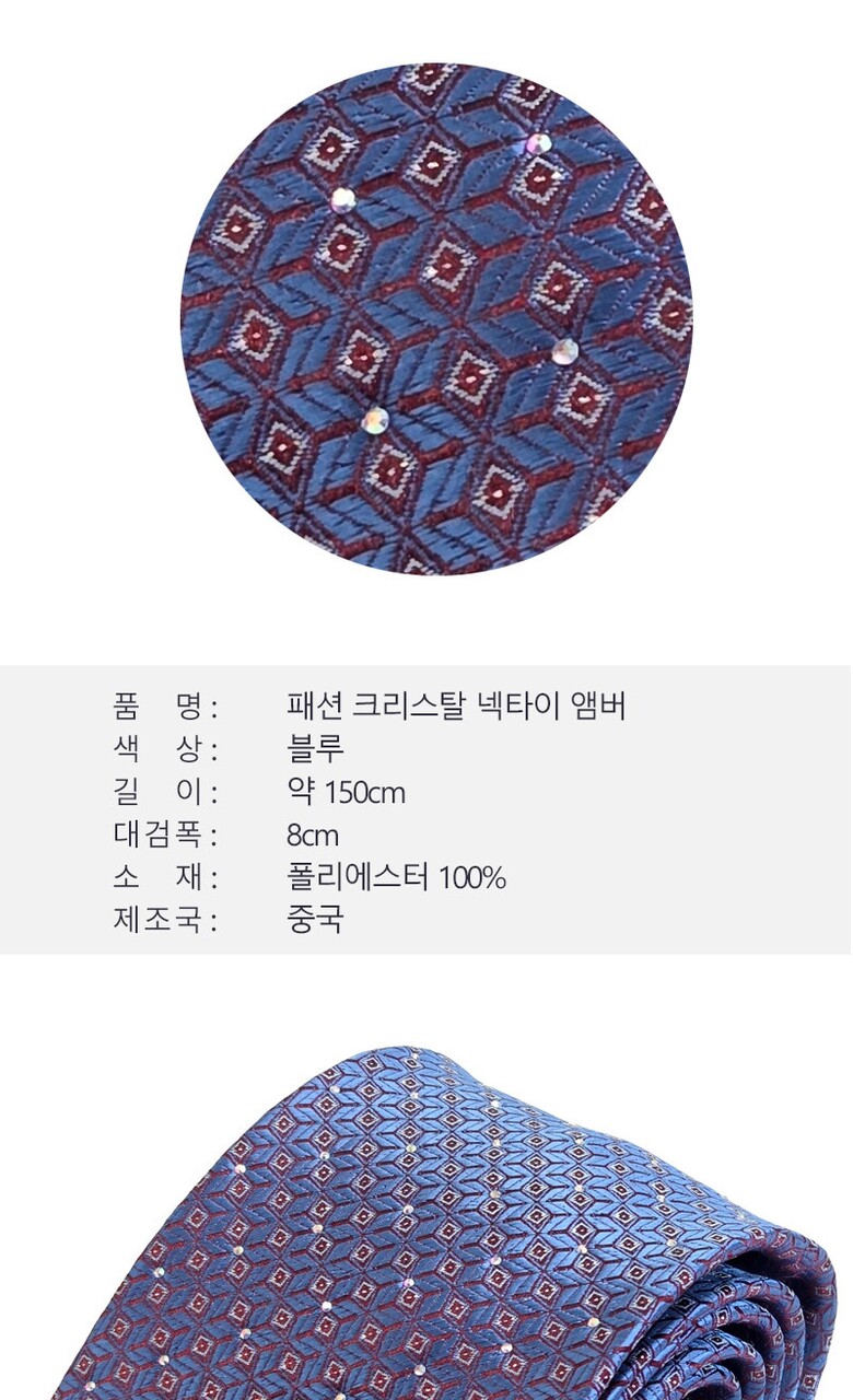 [ELLE HOMME] 엘르옴므 크리스탈 패션넥타이-앰버 블루 8cm