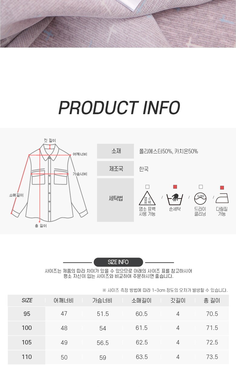 1. 제품 소재 (섬유의 조성 또는 혼용률을 백분율로 표시, 기능성인 경우 성적서 또는 허가서) 폴리에스터50%,카치온50%