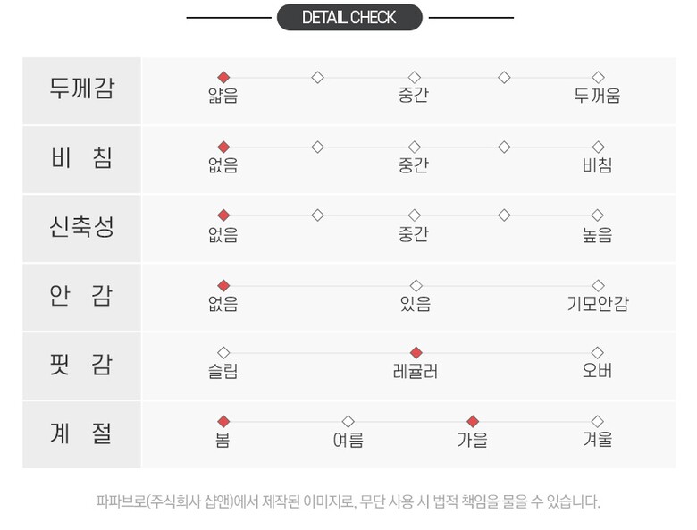 • 처음 배송된 상품상태와 다를 경우(세탁/착용 후 외출하신 경우) 반품이 불가합니다.