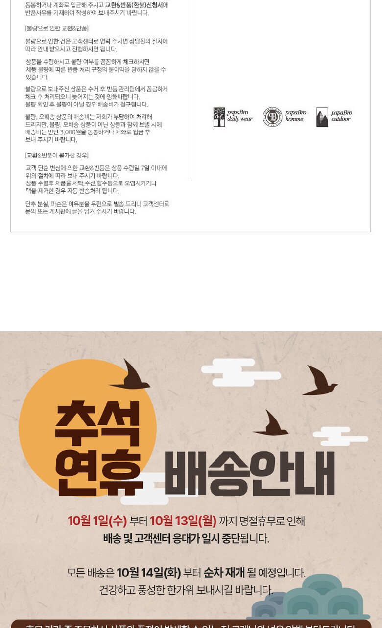 • 업체배송 상품은 해당 각 입점사의 교환정책에 따릅니다.