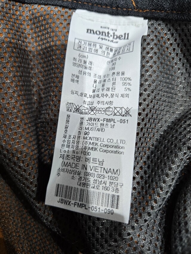 1. 제품 소재 (섬유의 조성 또는 혼용률을 백분율로 표시, 기능성인 경우 성적서 또는 허가서) | 겉감:폴리에스테르 100%[발수가공] 엉덩이.무릎:나일론 95%+폴리우레탄 5%[발수가공] |