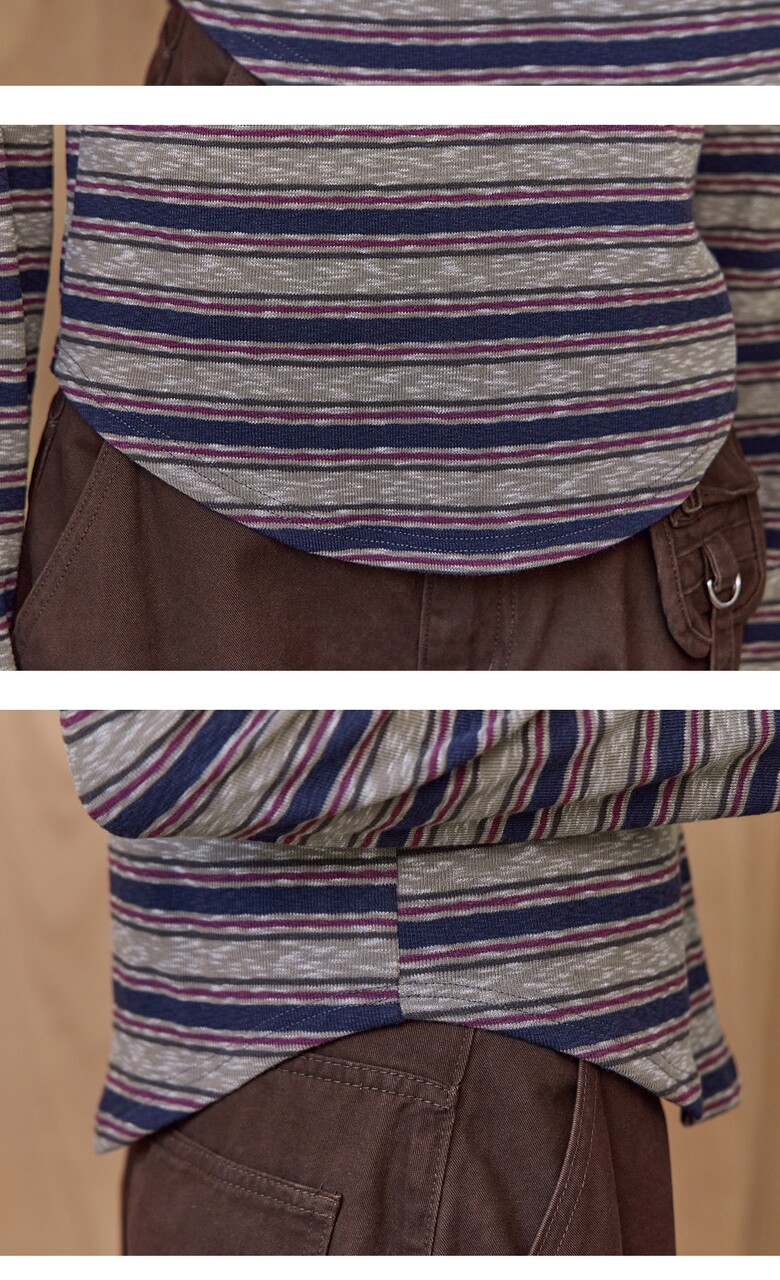 스트라이프 패턴 라운드 헴라인 슬럽 티셔츠