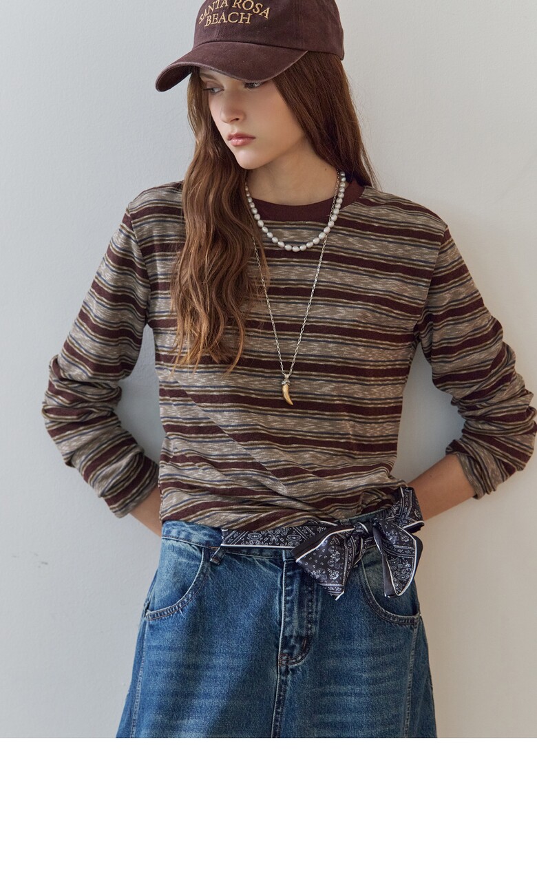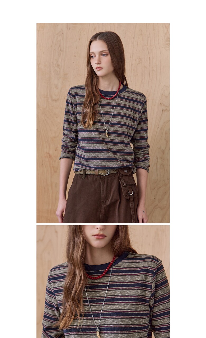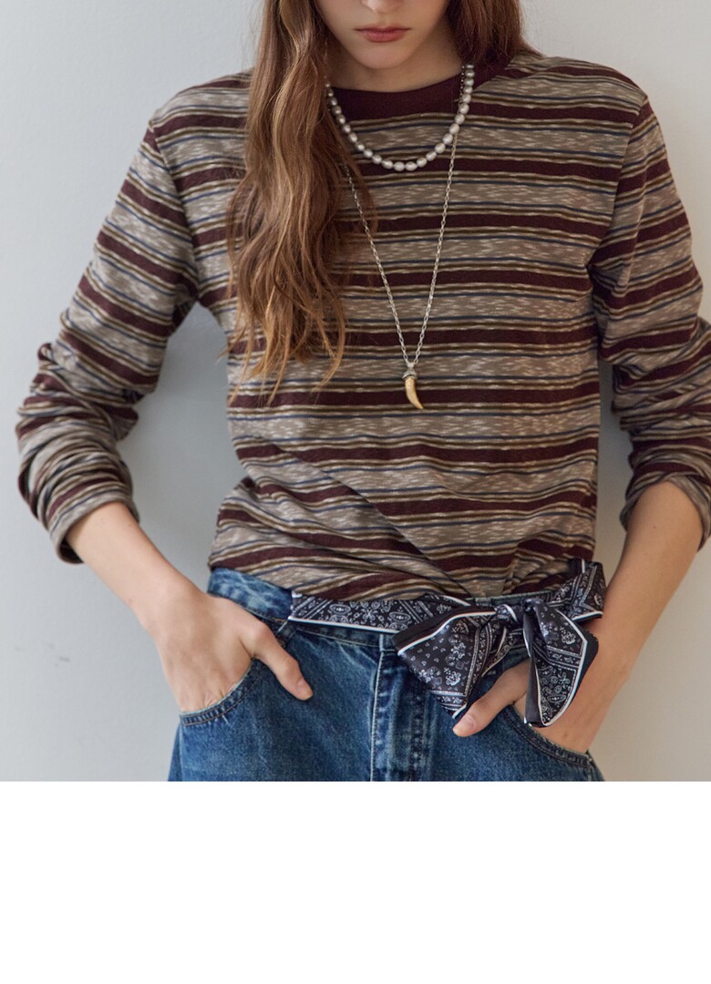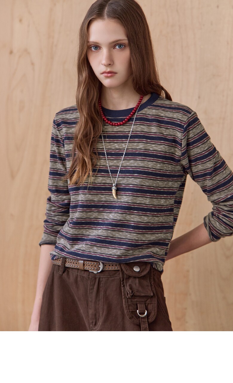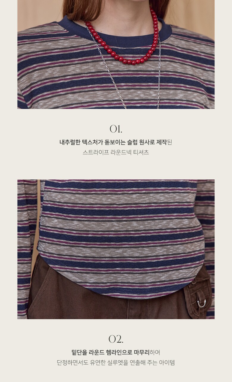 스트라이프 패턴의 라운드넥 티셔츠입니다.