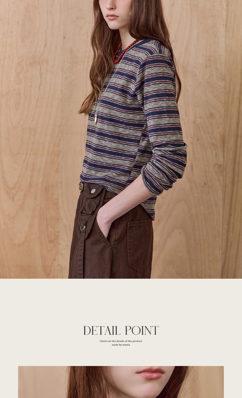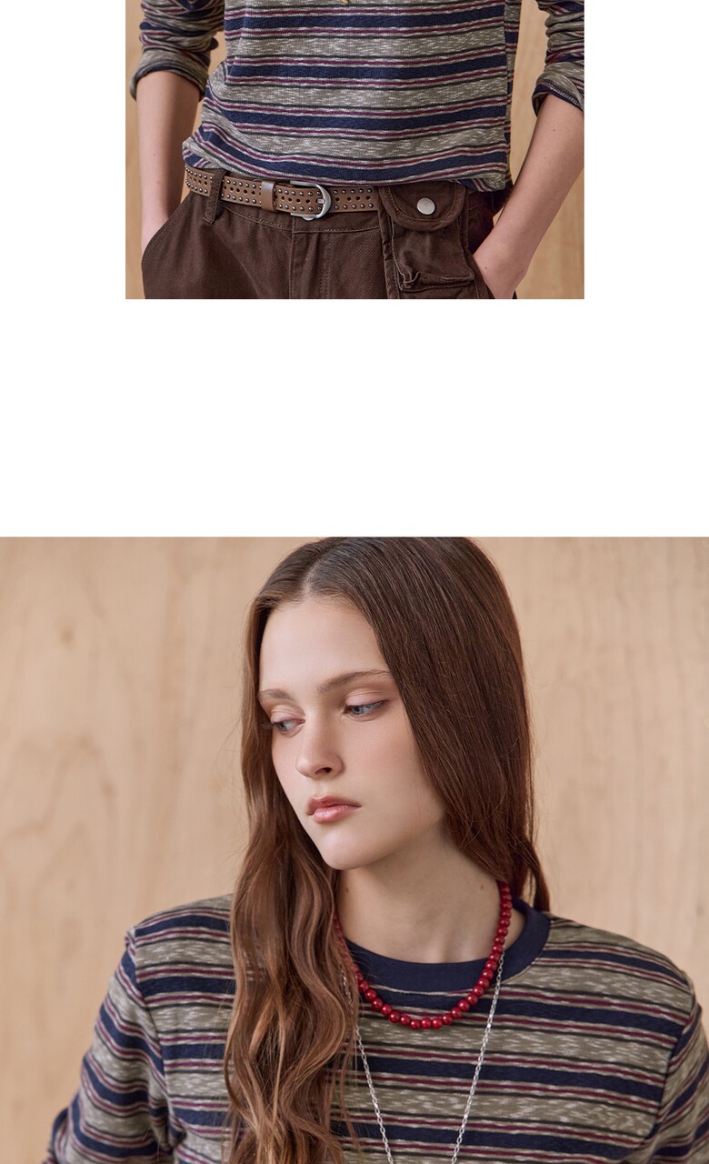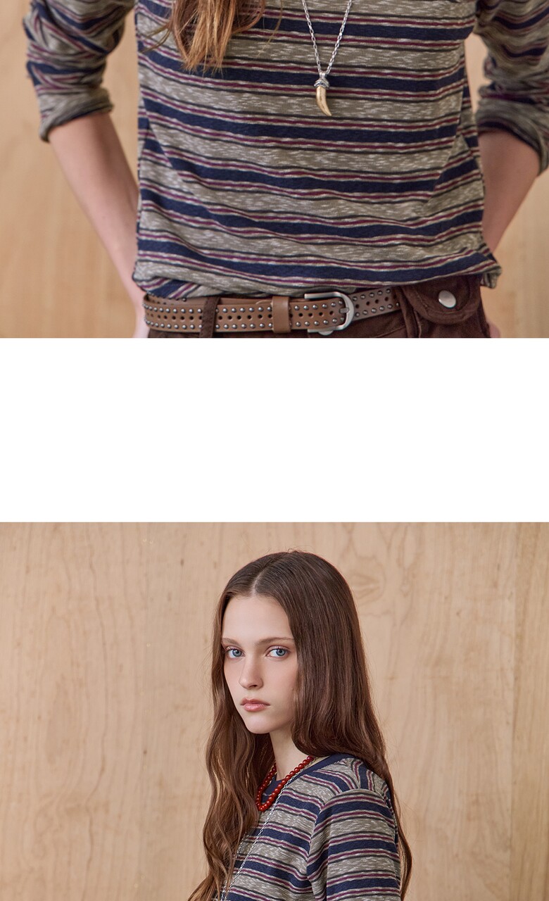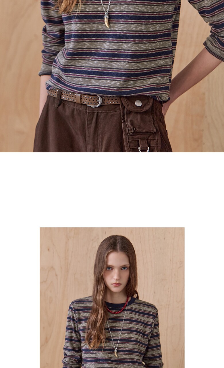 스트라이프 패턴의 라운드넥 티셔츠입니다.