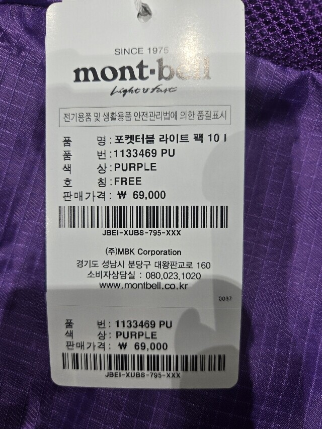 | 5. 제조사 | Montbell Japan |