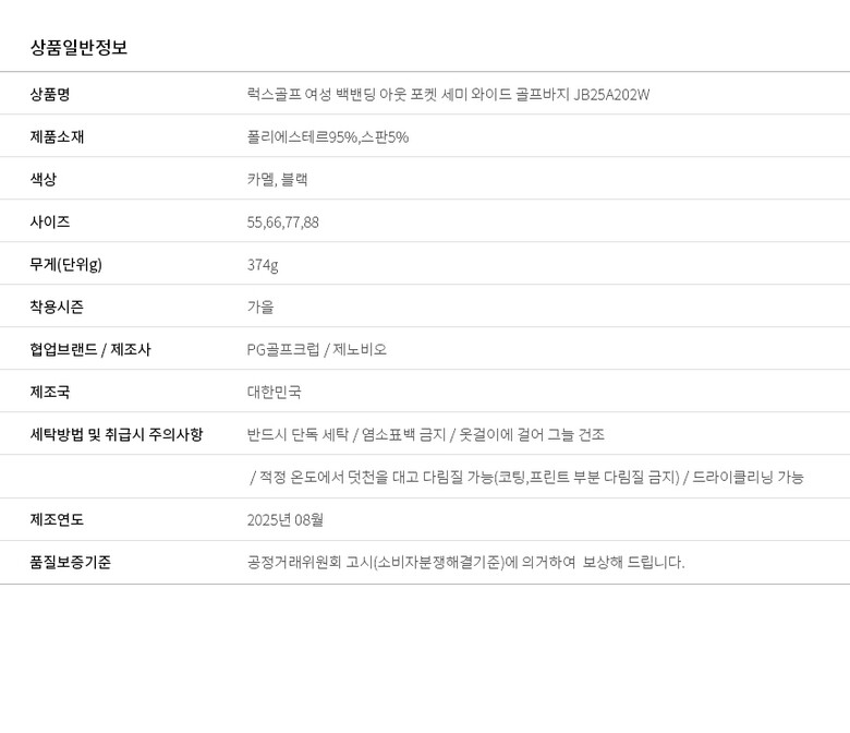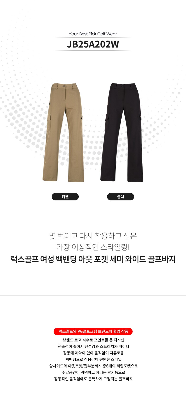 골피아 JB25A202W 여성 백밴딩 아웃 포켓 세미 와이드 골프바지
