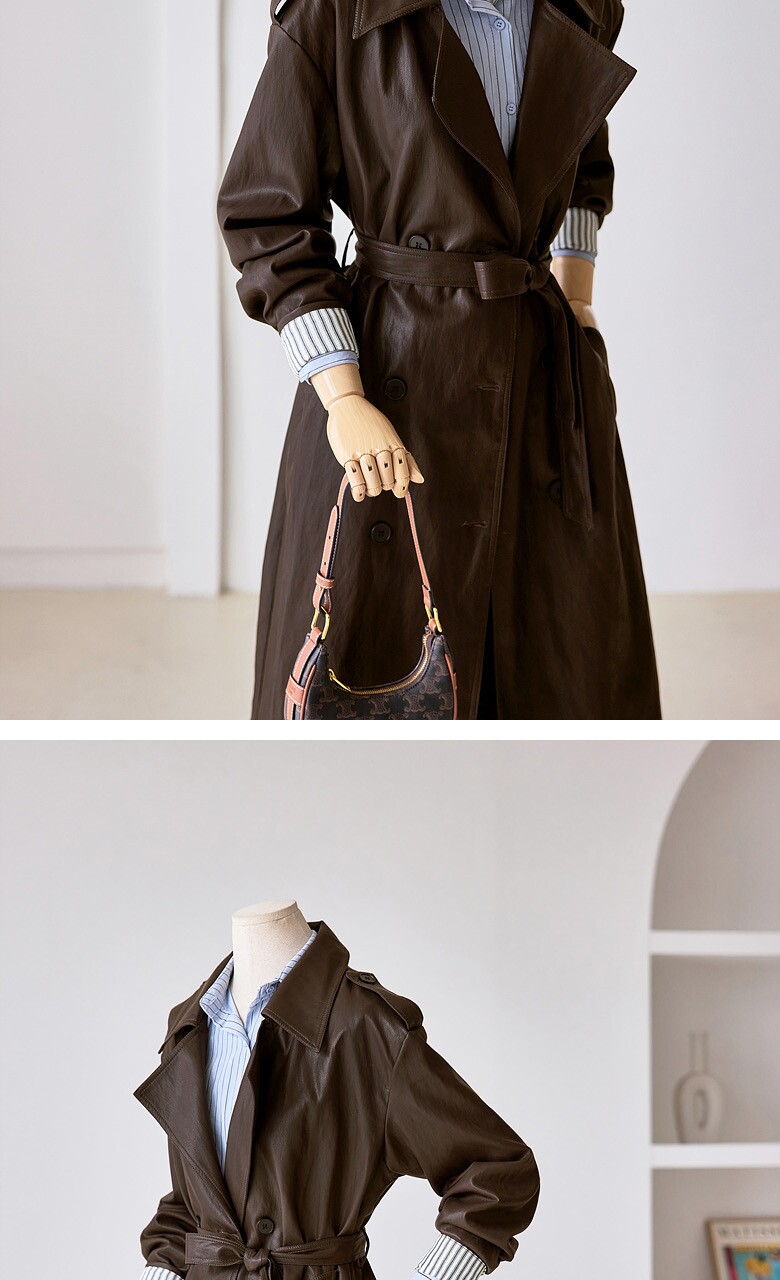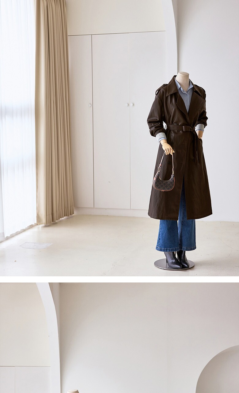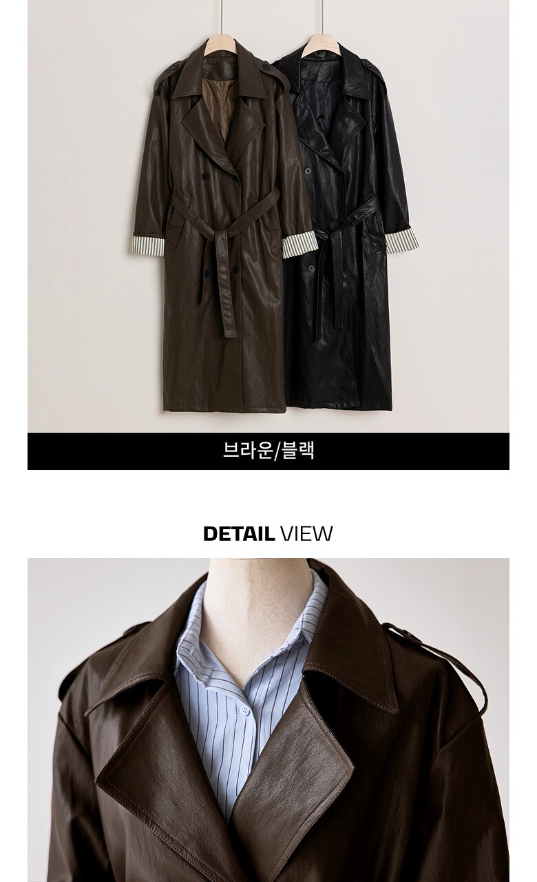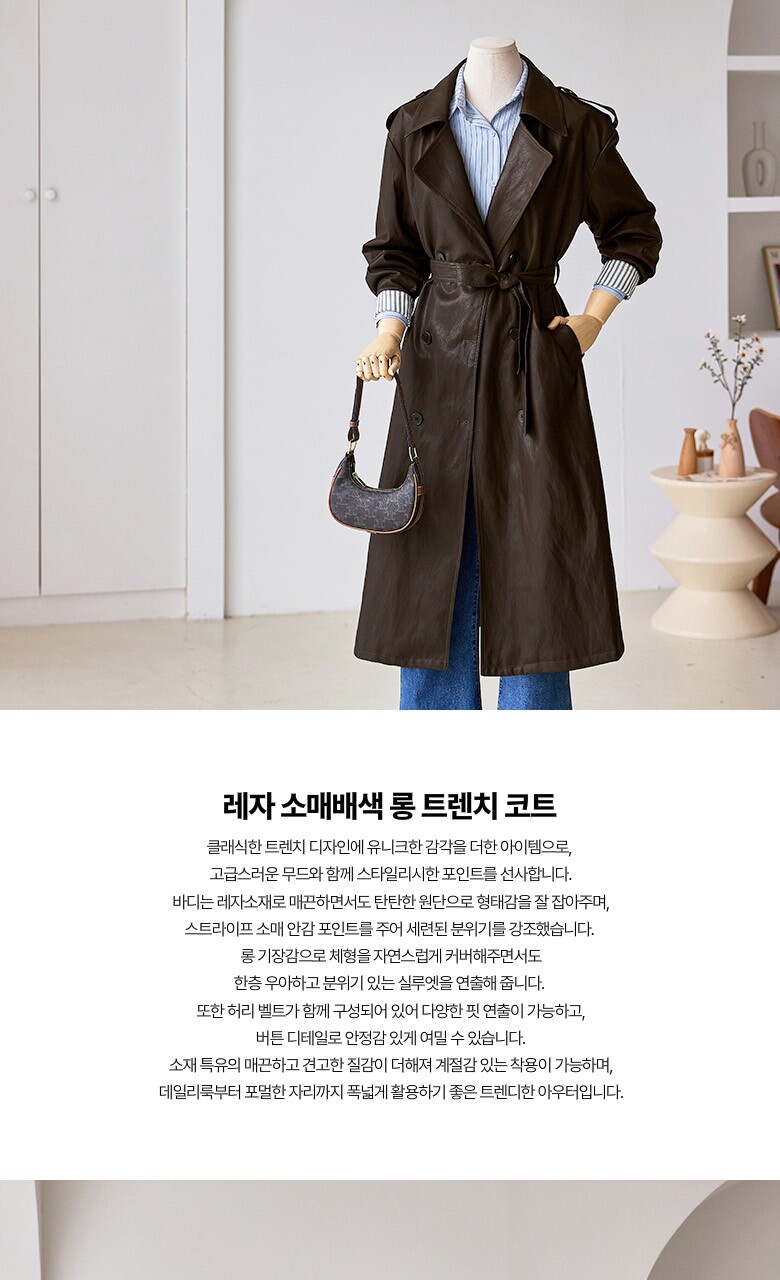 레자 소매배색 롱 트렌치 코트_T2510CT607C